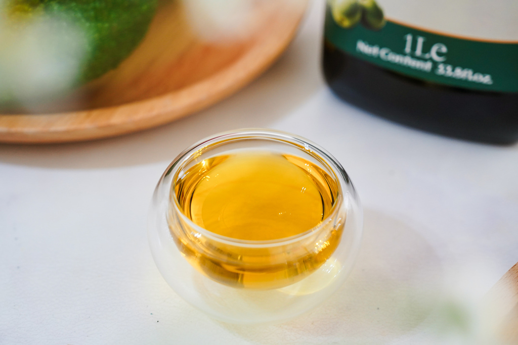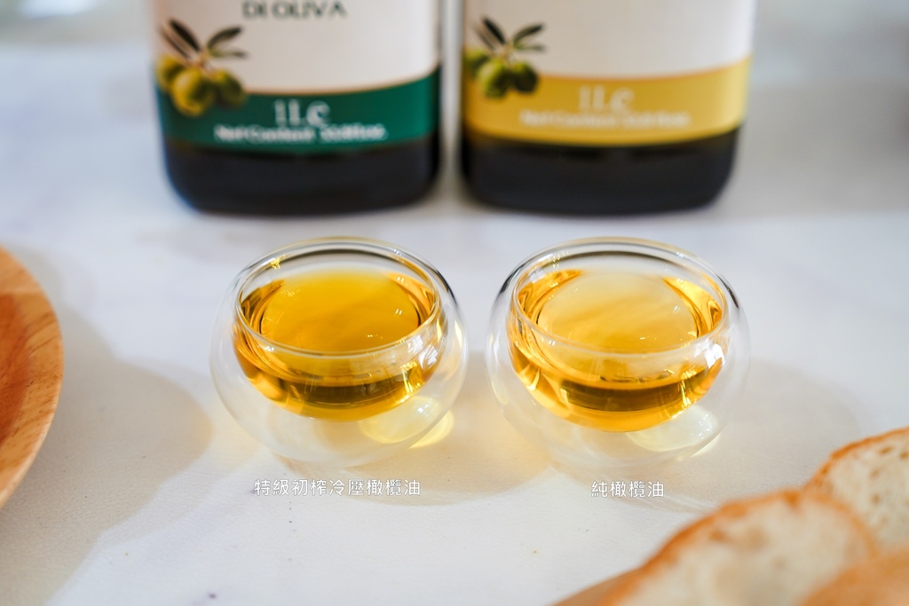 兩款油質都好清澈,特級初榨冷壓橄欖油因為是第一道壓榨,仔細看油的顏色會比純橄欖油稍微深一點,帶點橄欖綠,建議大家兩款都入手,根據不同料理和烹煮方式選擇不同橄欖油,用到好油,料理就成功一半啦!