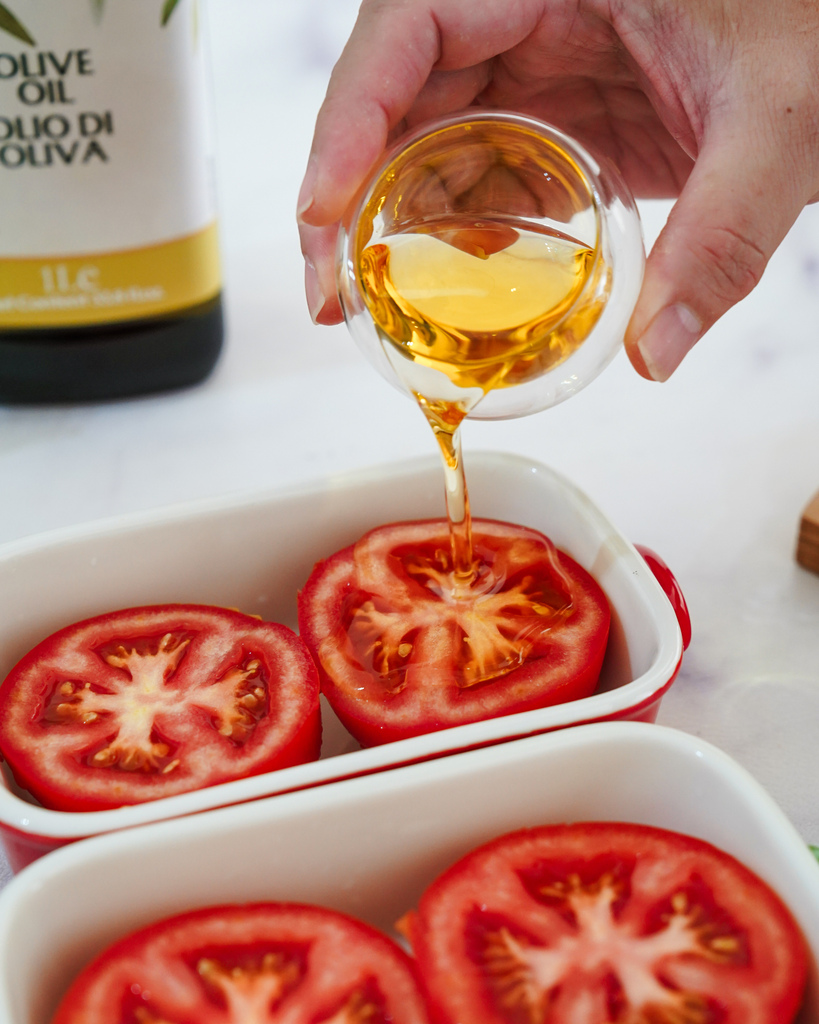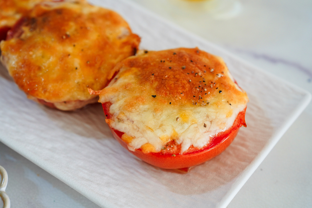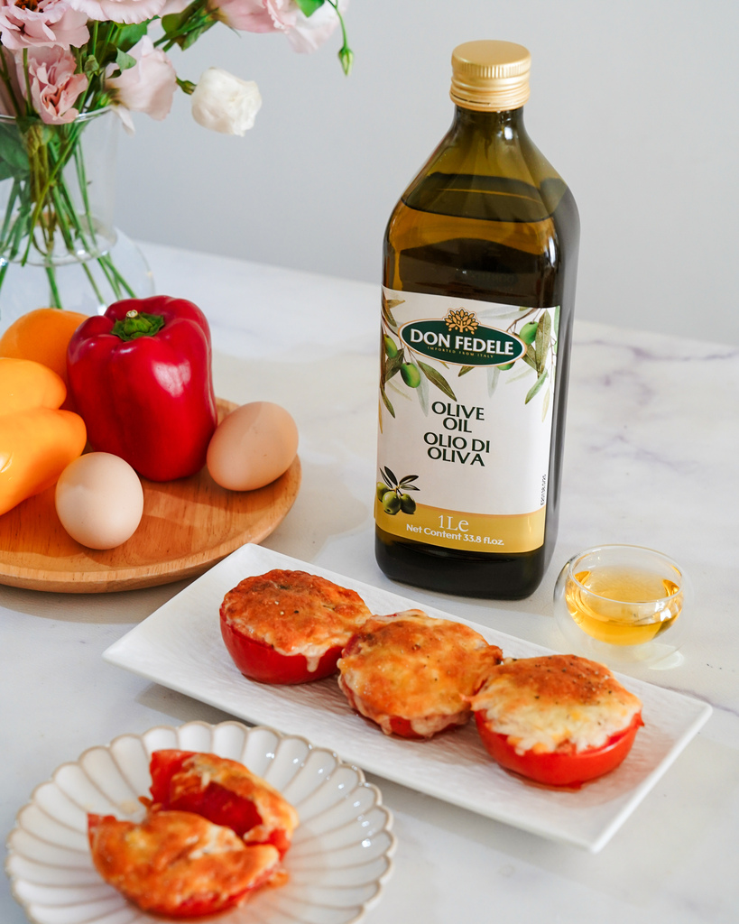 烤完後香噴噴,外層酥酥脆脆的焗烤,切開有拉絲感,多汁的蕃茄吃起來酸酸甜甜,因為有純橄欖油的果香提味,口感更滑順了,是一道可以當輕食料理或者開胃前菜的焗烤蕃茄,有好橄欖油加持,整體風味更添好滋味了!