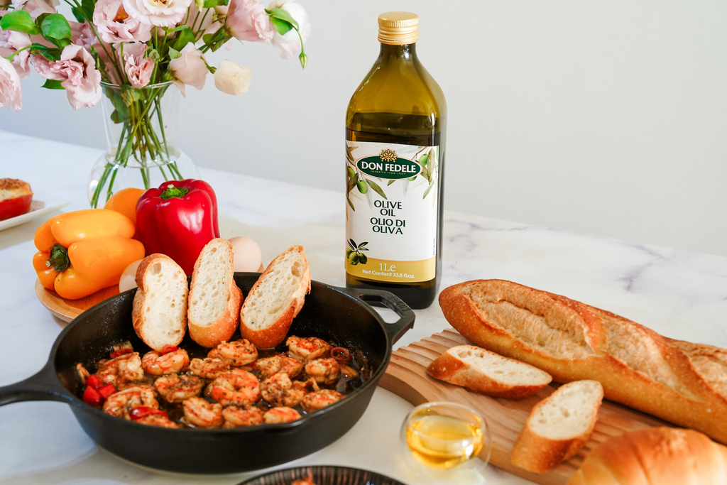 一上桌就立馬會被稱讚的料理,色香味俱全!這道料理的重點靈魂來自純橄欖油的魅力,透過熱油慢煮蒜片與蝦子,味道鮮香美味,更迷人的就是要用法棍麵包沾著蒜香橄欖油吃,香氣四溢啊!