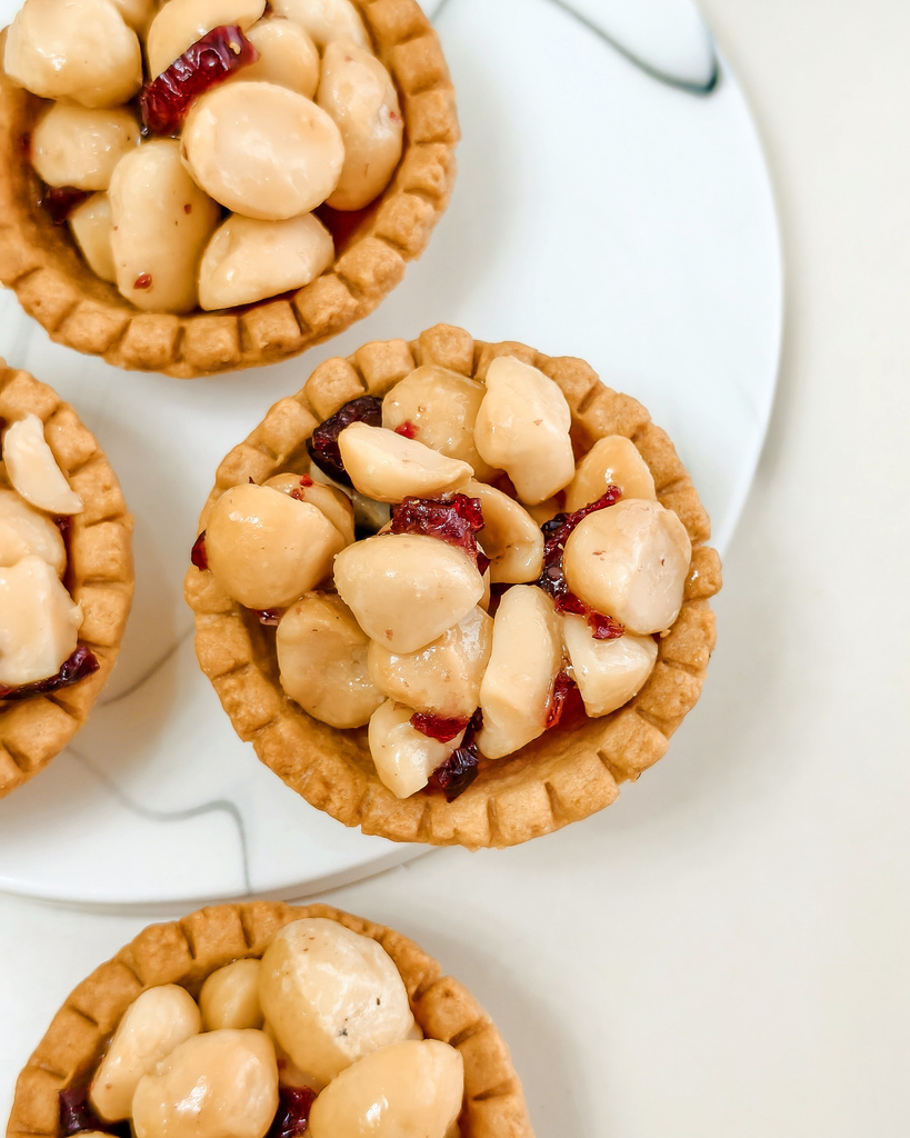 老少都愛的夏威夷豆塔,連我們家的小朋友都吃到豎起大拇指,酥香塔皮、帶有焦糖香氣的夏威夷豆與蔓越莓乾,是那種越嚼越香的口感,讓人每次都吃不膩!