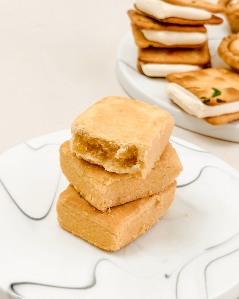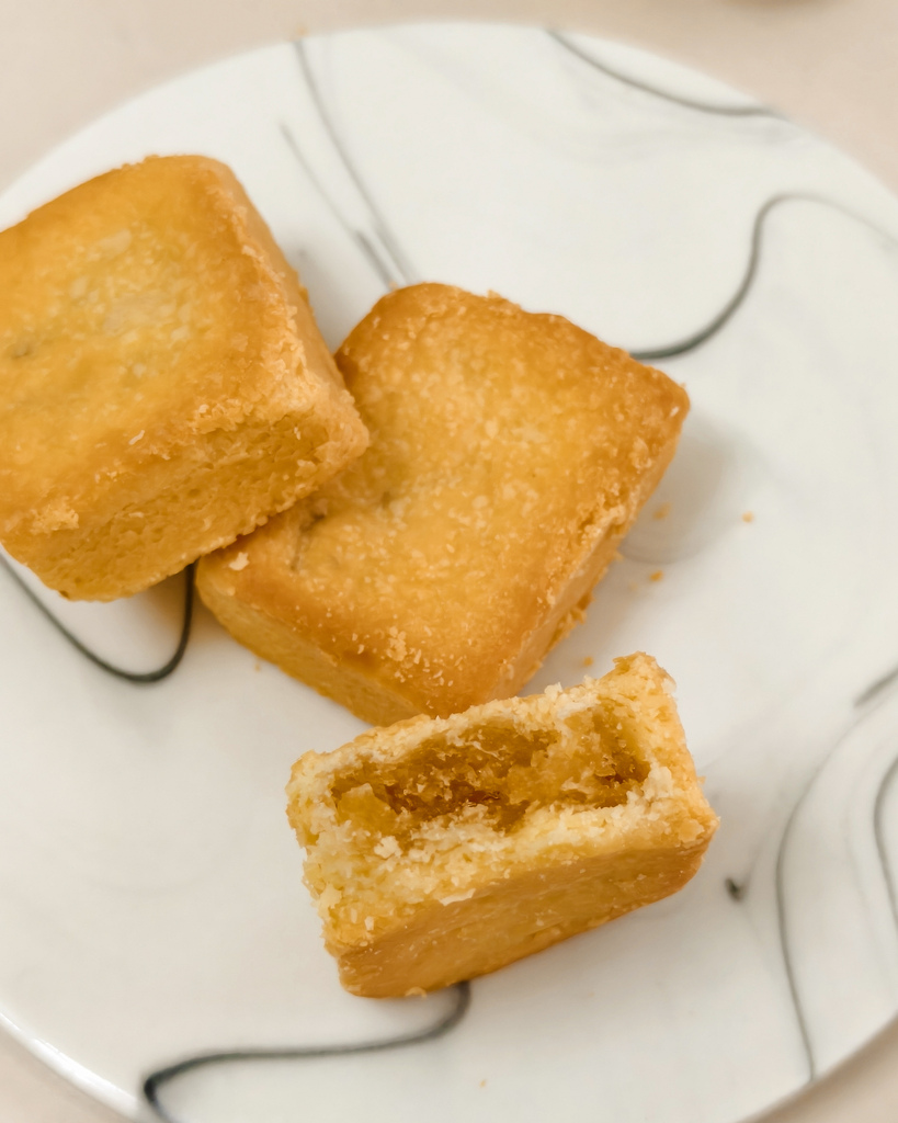一吃就覺得很懷舊的鳳梨酥,一口咬下吃得到充滿奶香的酥鬆餅皮,以及柔嫩的鳳梨內餡,以傳統黃金比例融合鳳梨醬與冬瓜醬,軟綿不膩口,是長輩也會喜歡的鳳梨酥滋味!