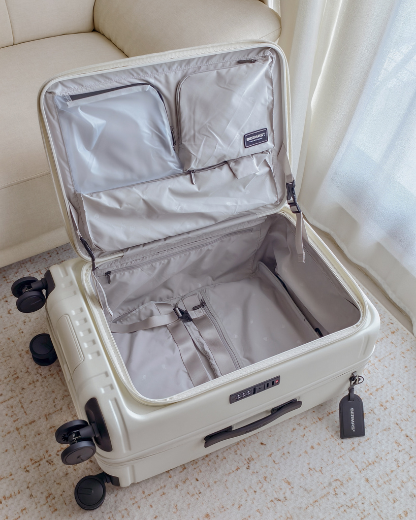 今年出國旅行假期還未定,不過國內旅行倒是可以好好計畫一番,過夜旅行最需要就是能好收納的行李箱了,實用與質感兼具的BERMAS TOP 2.0升級版 上掀前開式煞車行李箱是我近期的新歡!香草米色調高顏值,也很好搭配我的穿搭,不費力推著行李箱,走到哪美到哪!