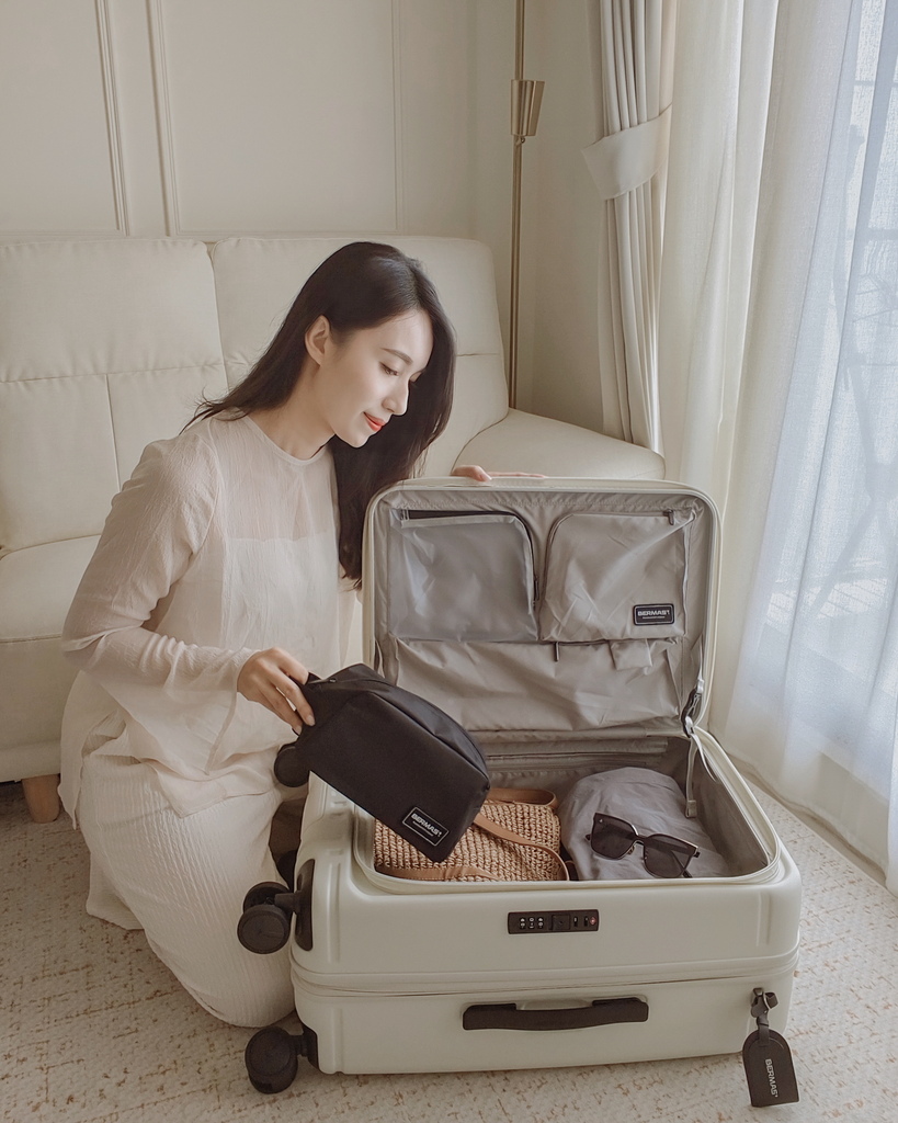 收納空間真的比想像中還能裝,而且前開式設計讓我收納物品更有條理,現在入手行李箱還有專屬品牌盥洗包,可以放些自己的隨身化妝保養品,真的很有儀式感呢!