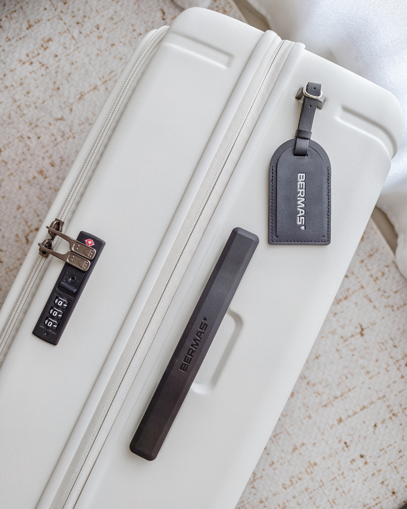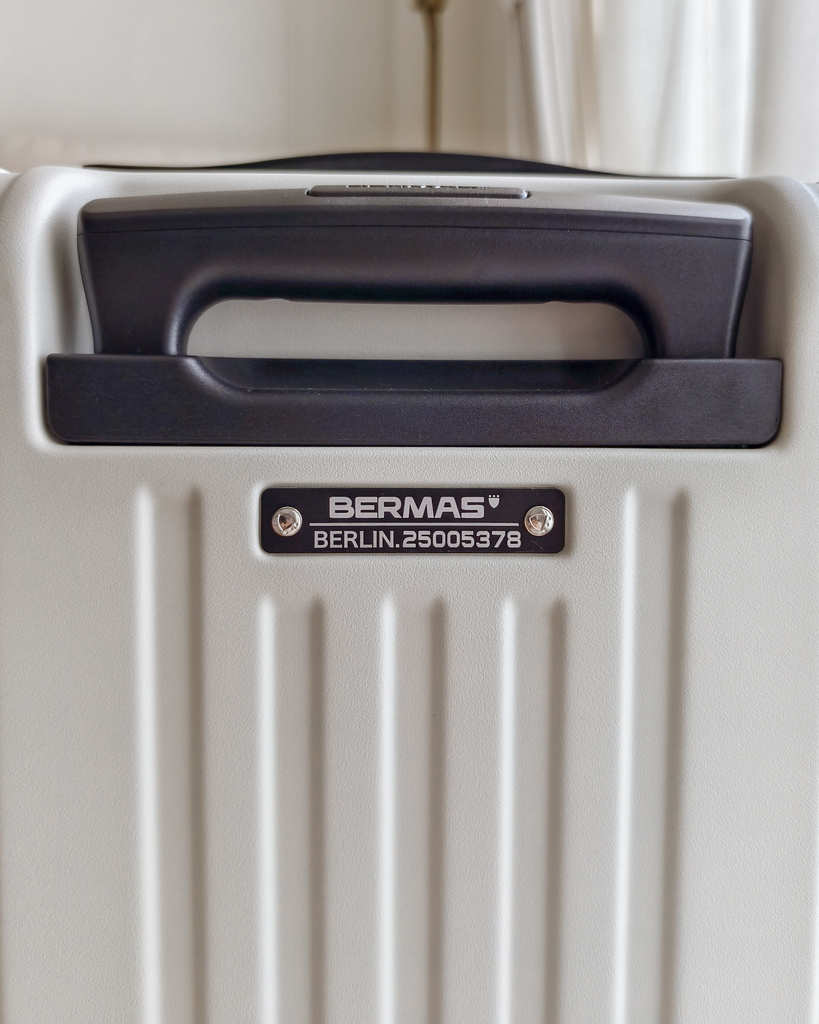 行李箱的正反面長這樣,比較特別的是BERMAS TOP2.0行李箱都有專屬的金屬序號牌,不擔心拿錯!!