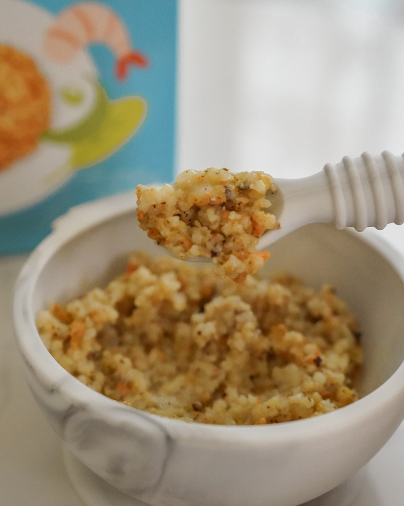 阿汮對於這口味也很喜歡喔,Q彈的燉飯讓寶貝越嚼越香,無添加調味劑、防腐劑等香料,吃到的都是最原始的風味,鮮甜好吃!燉飯的米飯顆粒看起來粒粒分明,但吃起來綿密帶有香Q口感,不會過於乾,寶寶燉飯可以幫助這階段的寶寶咀嚼力提升,相信未來進食會越來越進步!