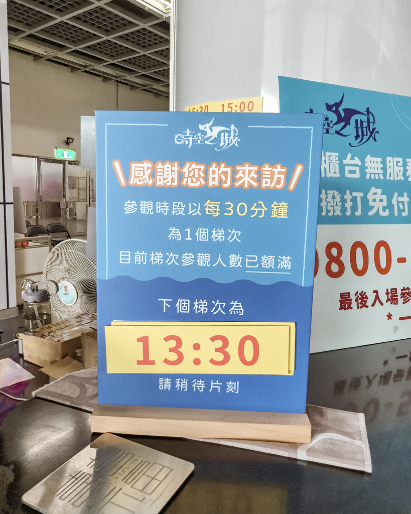 跟著告牌指示走就能看到高雄時空之城的洽詢櫃台,櫃台人員會確認預約名單及場次,接著會帶領搭乘電梯參觀。