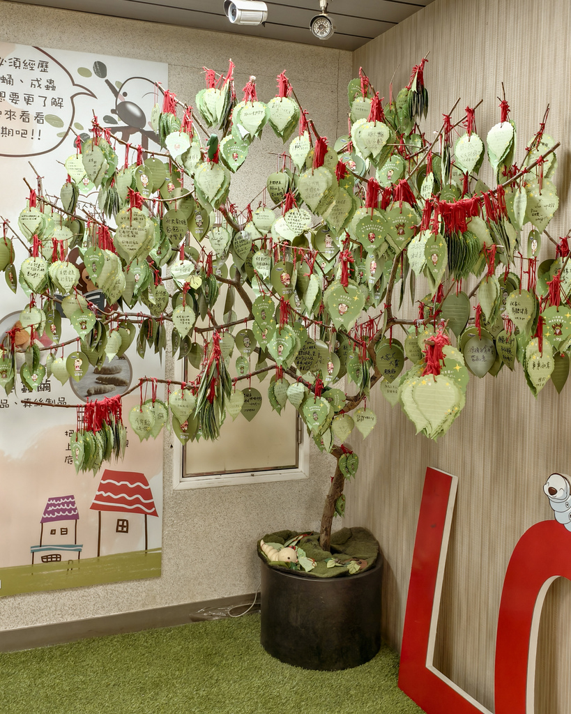 在參觀前櫃台接洽人員會給每人一張桑葉造型的卡片,可以自由發揮寫下願望,掛在樹上唷!