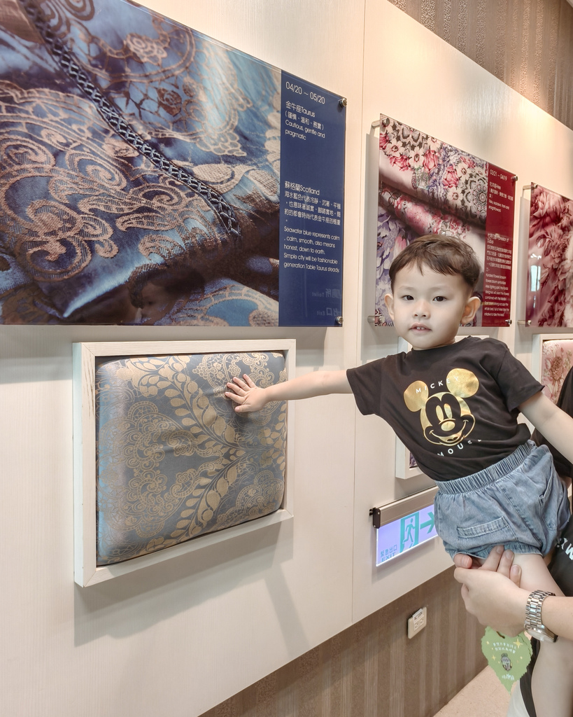 接著導覽人員也熱情解說關於羊毛被、蠶絲、天絲材質有哪些不同,也有展示牆讓大家可以親自觸摸感受好材質