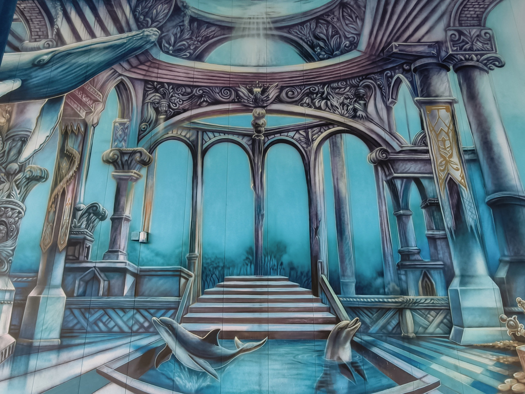 彷彿彷彿走進海底宮殿,眼前的3D立體彩繪拍起來讓人驚呼連連,來自圖龍大師的彩繪作品,每一處都能拍出創意美照!