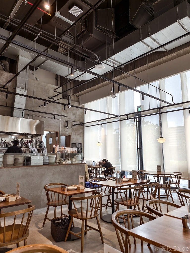 非常有文青風格的用餐環境,有大面落地窗環繞整個採光很好,而且採用開放料理吧台,讓用餐的客人也能清楚看到料理過程,老實說我覺得挺療癒的!座位區不少,會由店員帶位入座,舒適的環境讓人享用美食就是心情好加分!