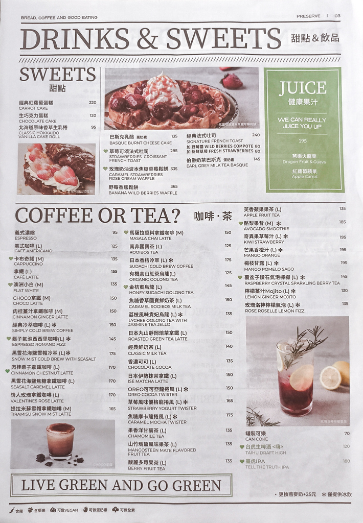 PRESERVE的餐點主打健康與原型食材,享受健康美味的蔬食料理來PRESERVE就對了,而且也有多種創意異國風味的料理,可以說選擇性非常多呢!