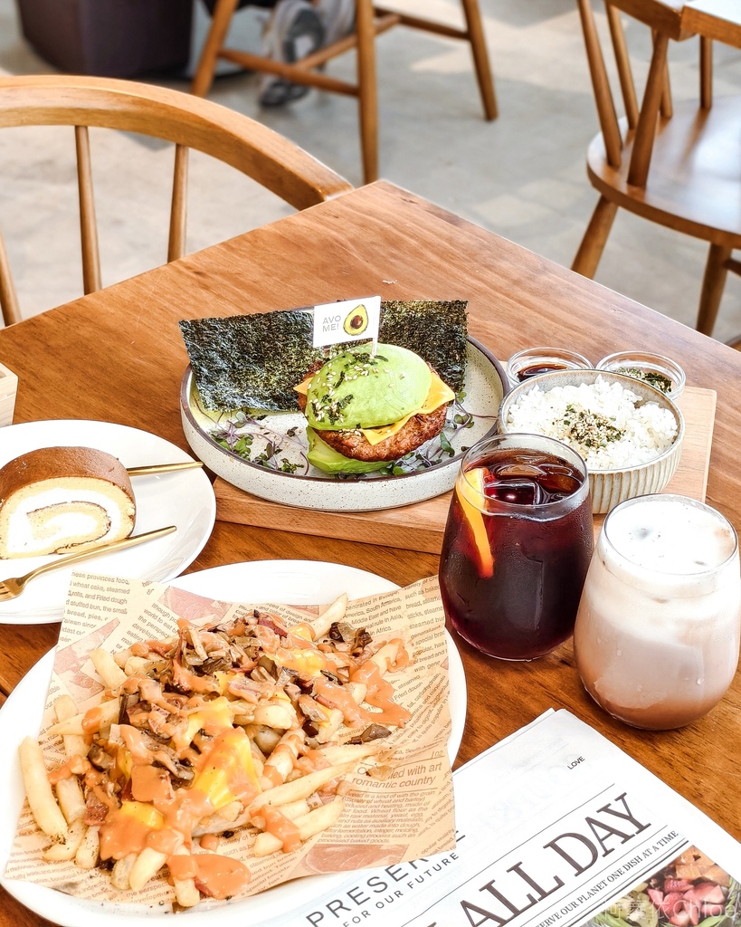 主角就是這顆酪梨漢堡,使用整顆新鮮酪梨,光是看了就讓人食指大動,中間還夾餡PRESERVE自製植物漢堡肉,真的非常好吃,那植物肉吃起來口感很紮實加上甜醬油,太完美啦!