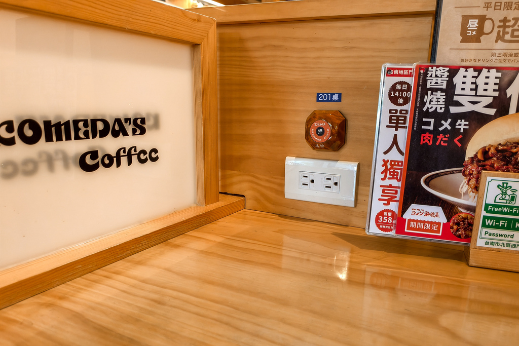 客美多咖啡 Komeda's Coffee 台南小北店座位有高達117席,不管是一個人、兩個人還是全家福,都能找到適合的座位區,店內也有販售相關周邊商品,不得不說每家客美多咖啡的擺設都維持一致風格,就像置身在日本