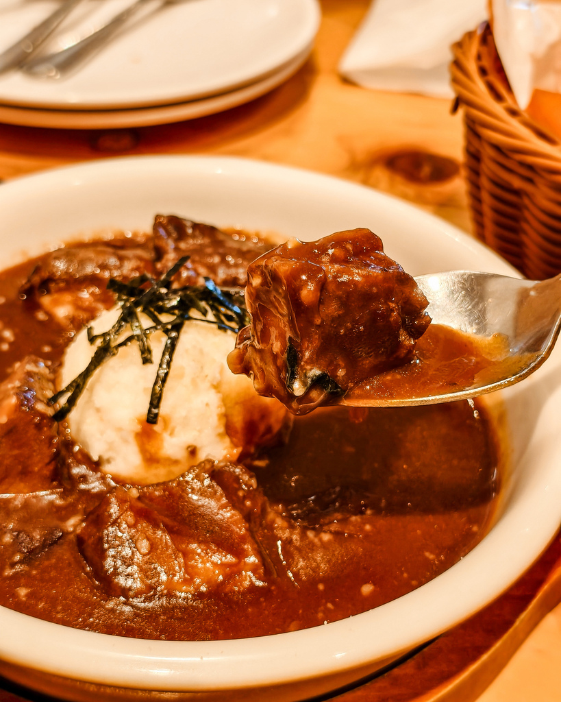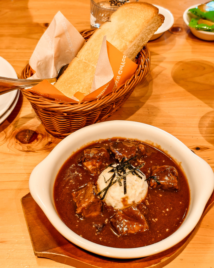牛肉燉到很軟嫩,醬汁濃郁,味道我覺得偏重,不過與一旁的烤土司搭配吃起來,倒是剛剛好耶,不知不覺就讓人吃光光,看見盤底!!