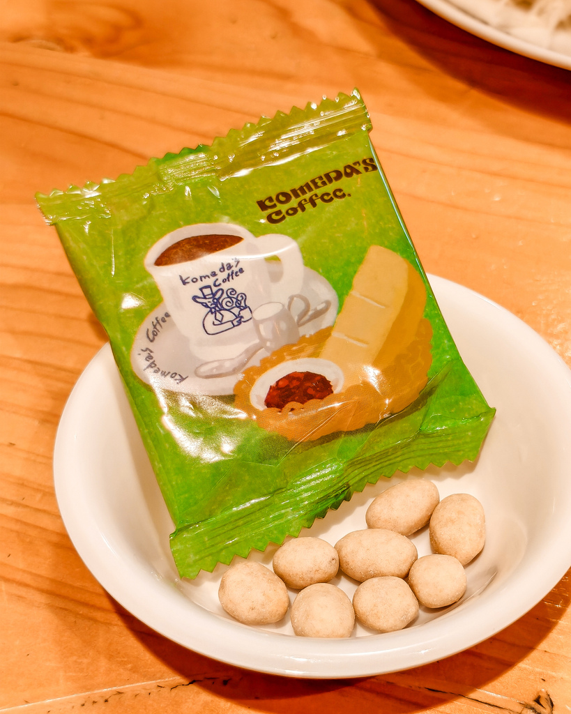 每一杯飲品都會附上客美多花生,這也是客美多咖啡款待客人的小點心