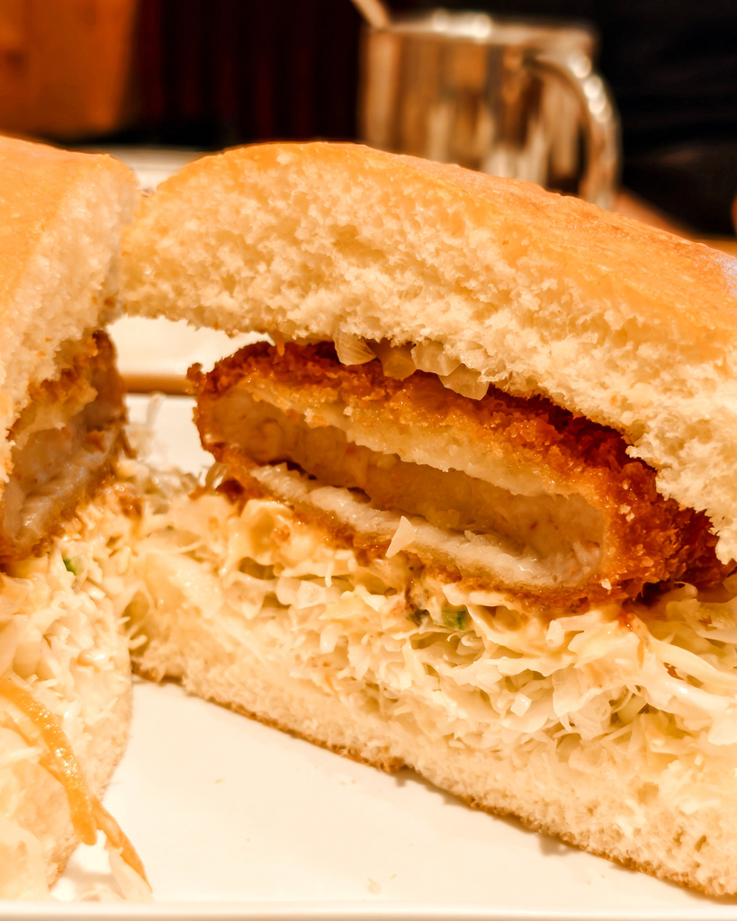一上桌就吸引目光,這份量也未免太大!!吃完超滿足,厚實的酥香麵包夾著炸蝦排,味道真的很棒,搭配爽脆生菜絲、清爽醬料,整體吃起來就是讓人覺得不膩口
