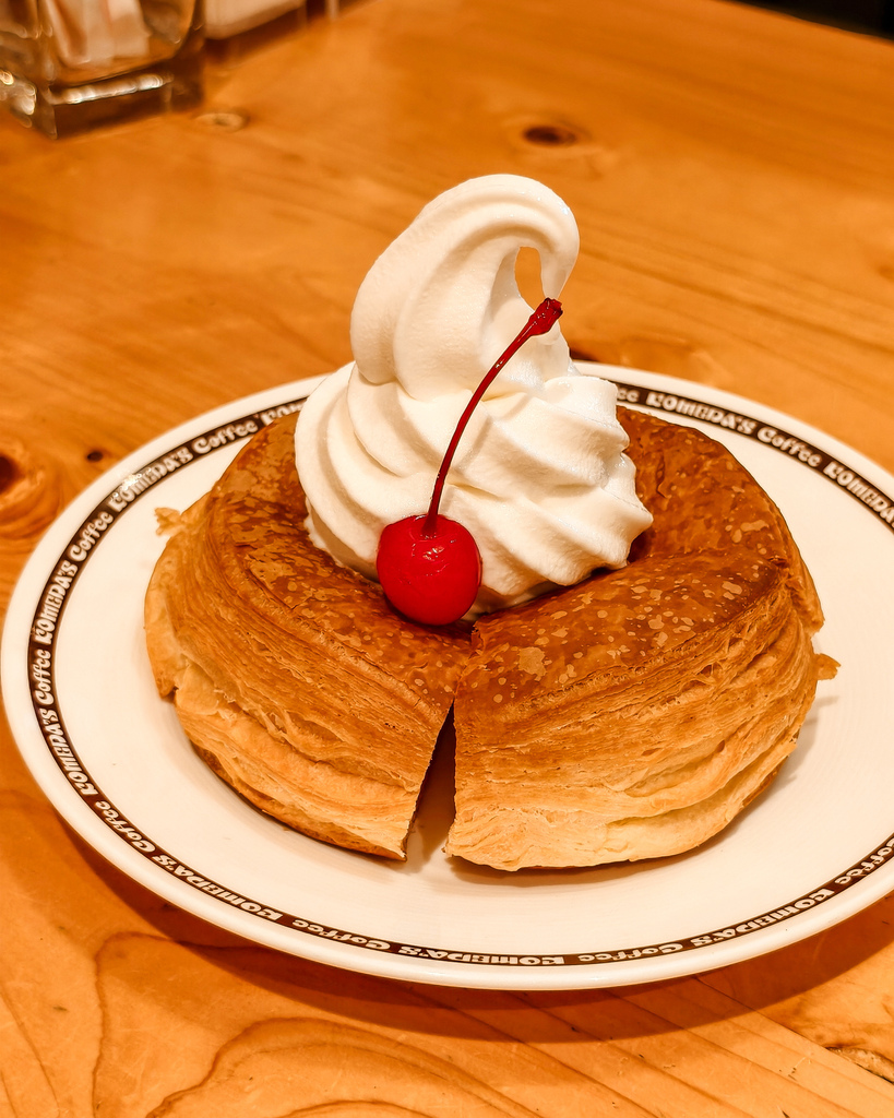 這是我每到客美多咖啡都會點的點心,烤過的丹麥麵包上,加上霜淇淋,不僅口感對比,連視覺上也特別吸睛!而且店家很貼心,都有幫我們把麵包切成等份,方便沾著霜淇淋,吃起來可以很優雅!!