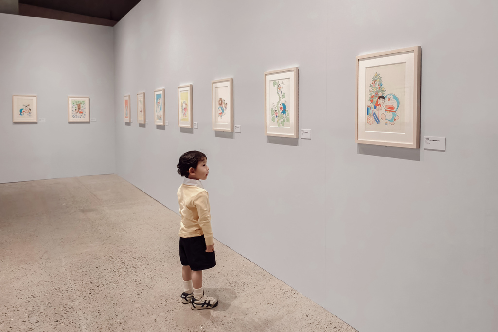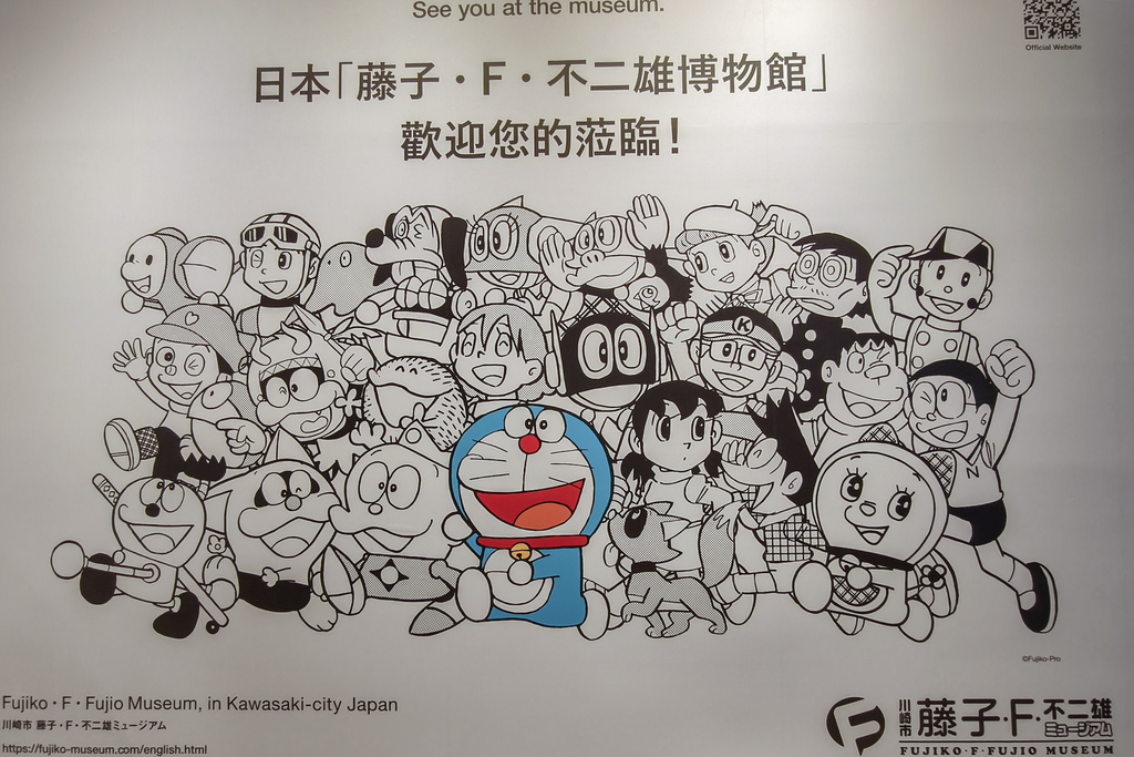 牆面上有好多藤子.F.不二雄老師創作的作品,好多經典畫面,讓人大飽眼福