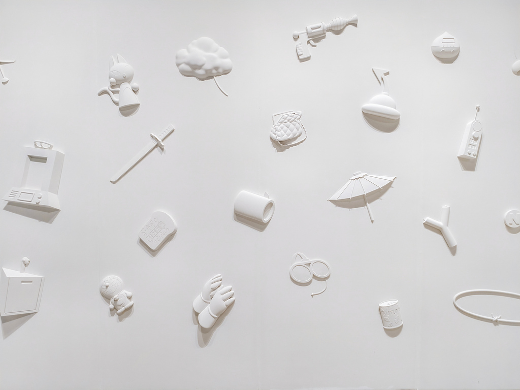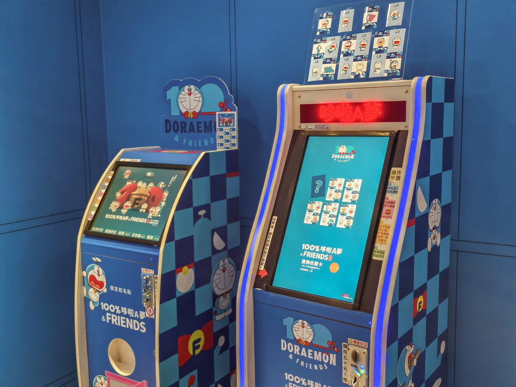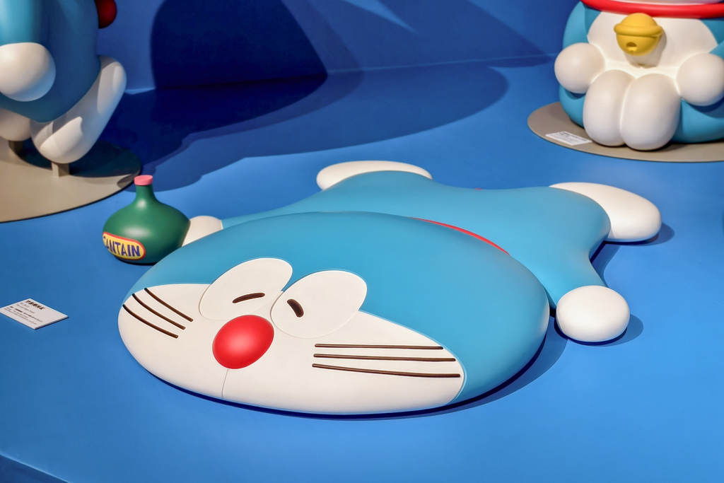 迎面而來拿著100%朋友召喚鈴的哆啦A夢,白色背景牆通通都是哆啦A夢使用過的道具,身為哆啦A夢迷,肯定都有印象!!