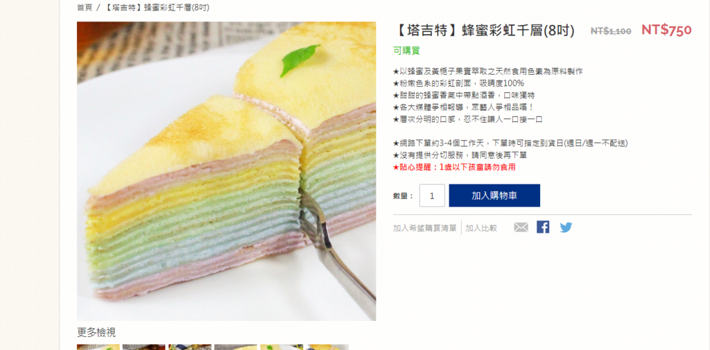 找到了我要的蜂蜜彩虹千層蛋糕,直接下訂單啦!
