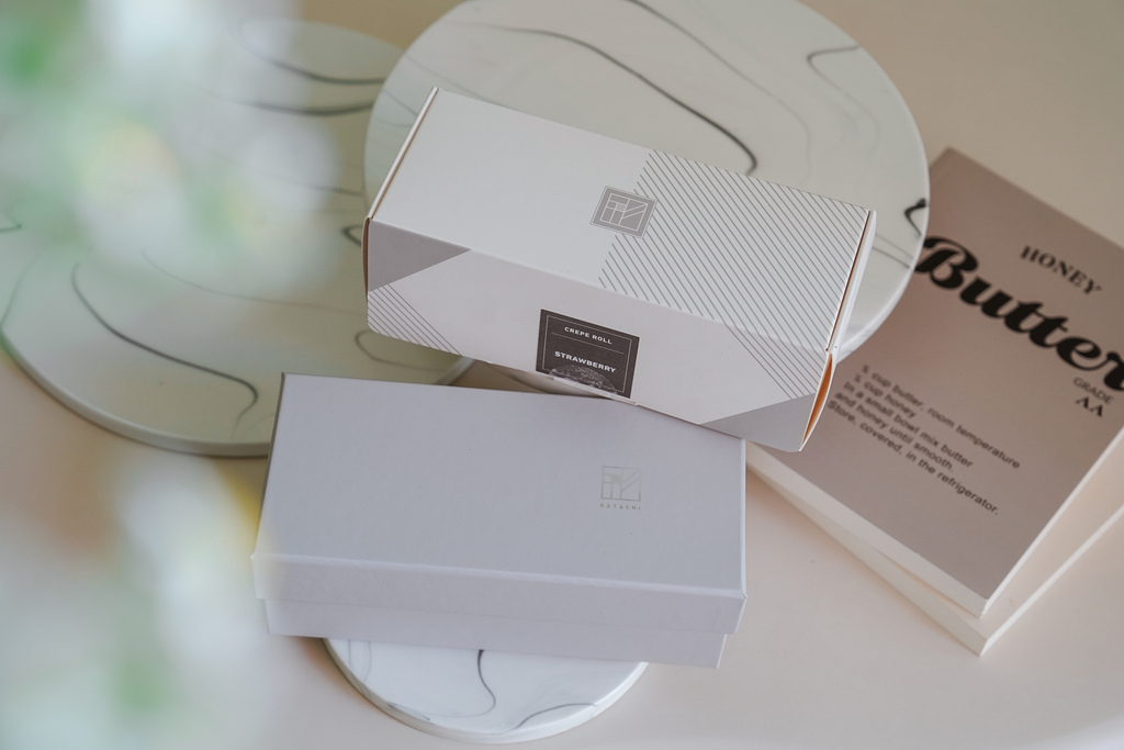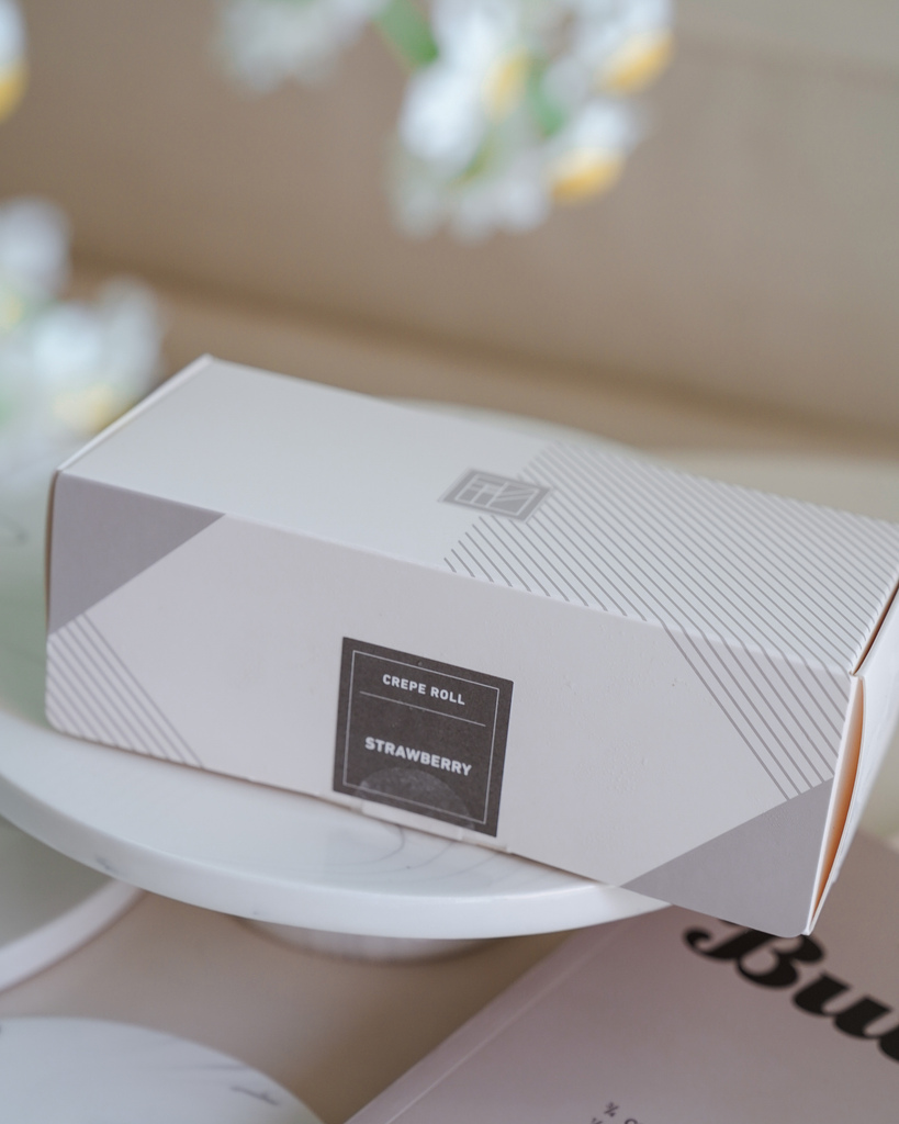 極簡白色風格的包裝,打開紙盒會看到品牌的用心,除了日式千層捲保護得好好之外,還附灑粉包,讓口感更升級!