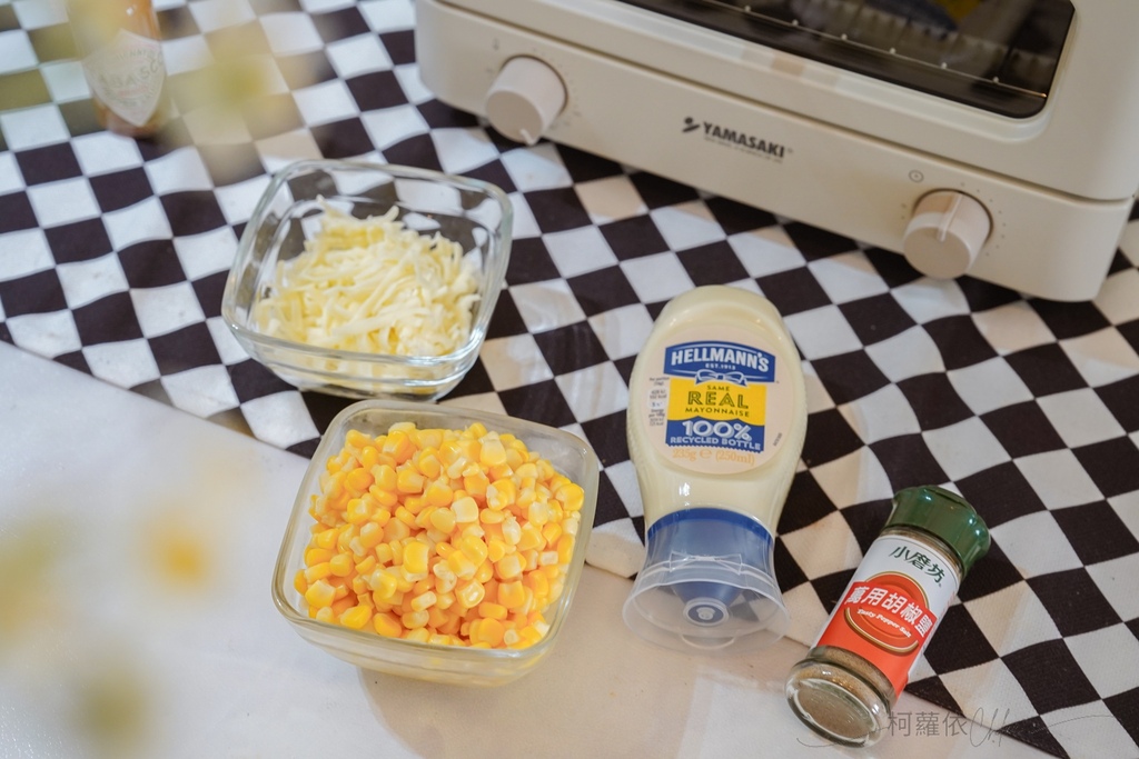 食材:玉米粒罐頭、美乃滋適量、胡椒粉少許、焗烤用起司絲