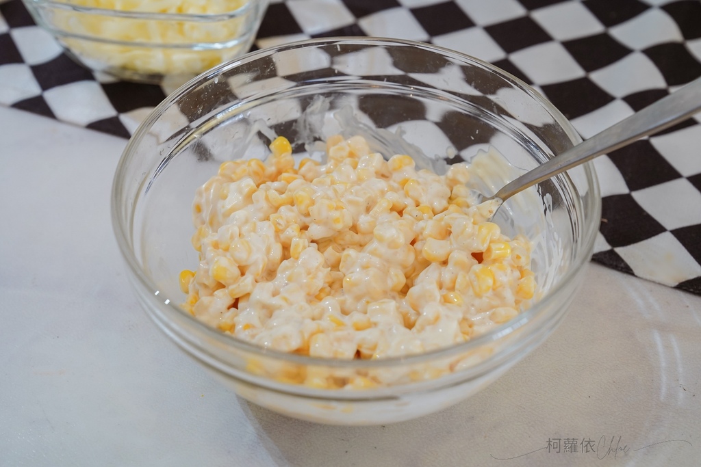 1.將玉米粒、美乃滋與胡椒粉混和均勻