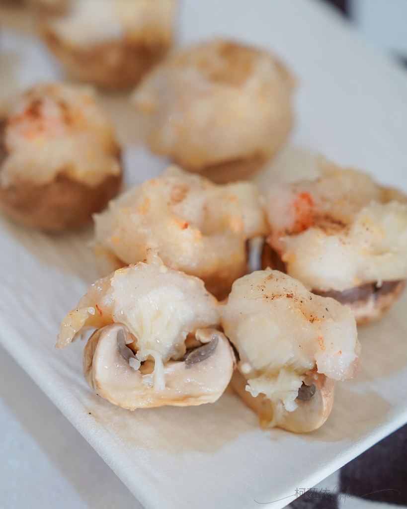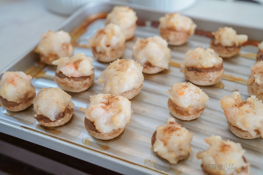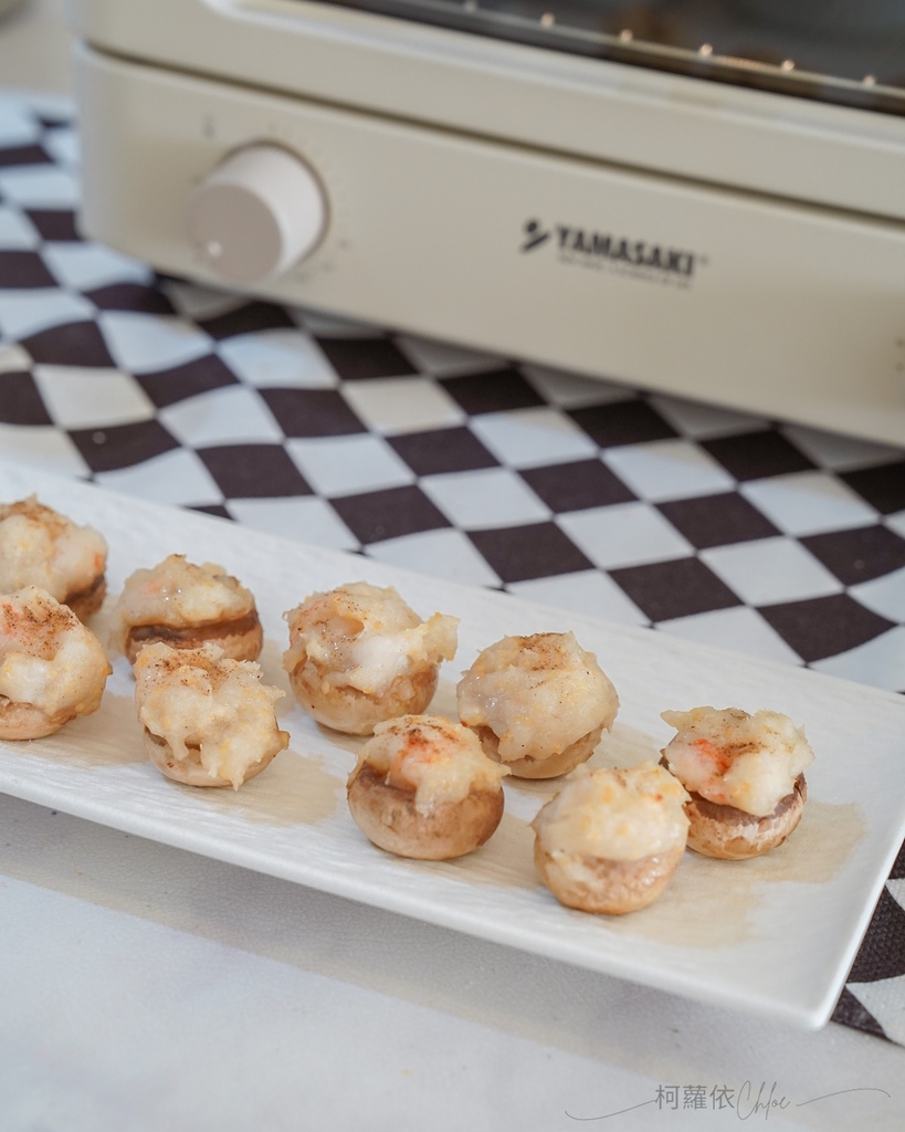 這道可以說是餐桌上秒吃的料理,只要準備好蘑菇和花枝蝦滑,經過烤箱烤過之後,口感大升級