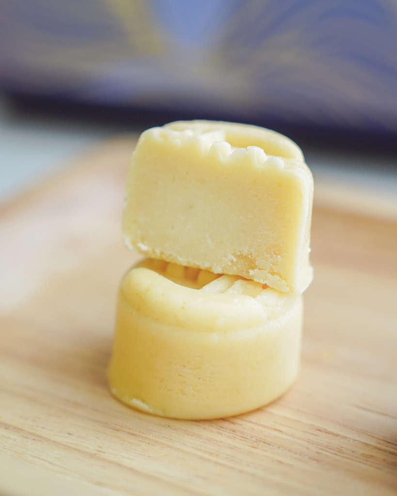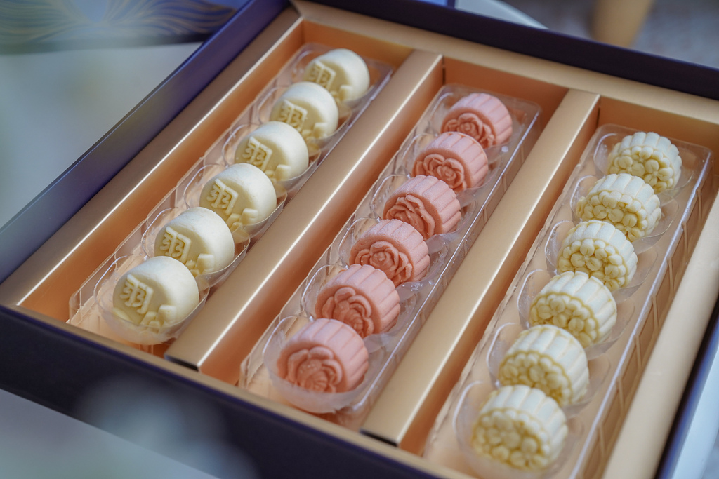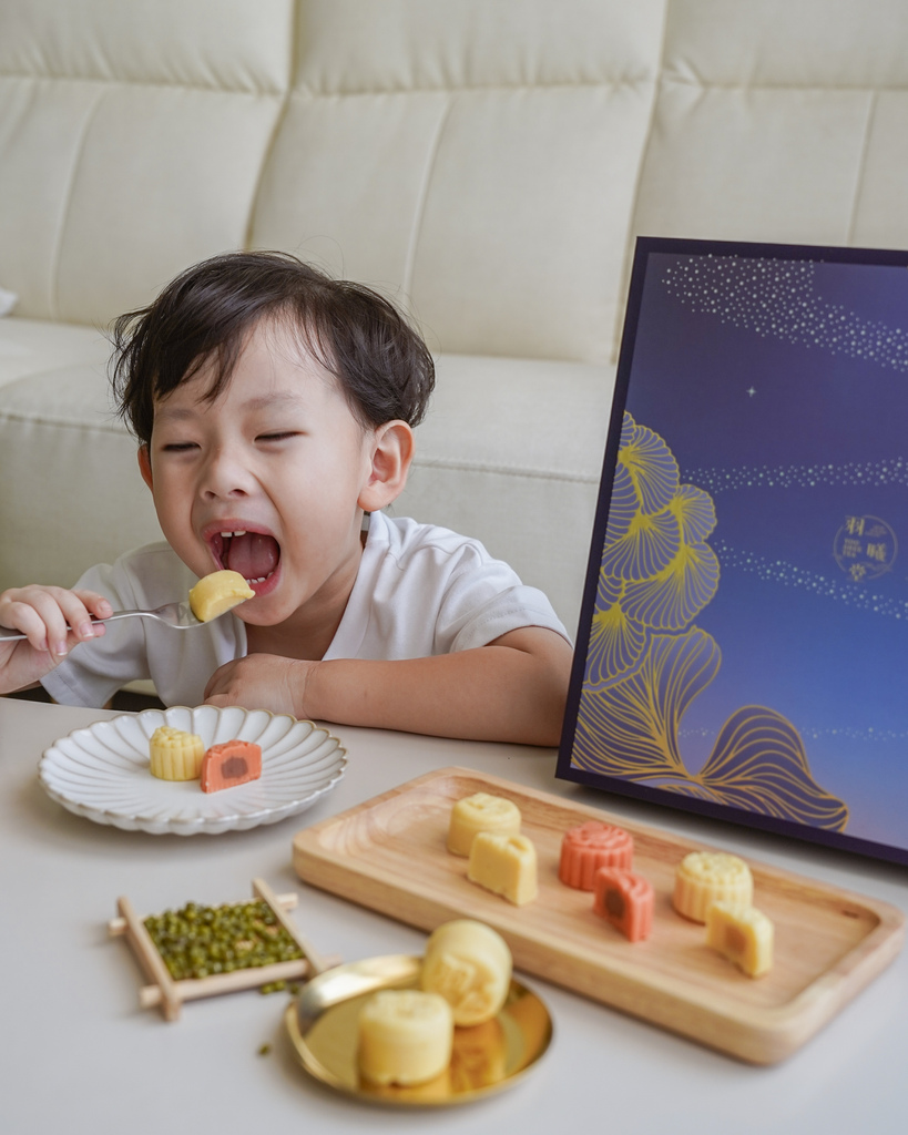 打開禮盒,映入眼簾的是一顆顆排列整整齊齊的冰豆糕,孩子在一旁跟著我開箱的時候,忍不住想拿一顆啦,因為冰豆糕的模樣實在太討喜了,每一種口味的雕花都不同,精緻可愛,讓人愛不釋手!!