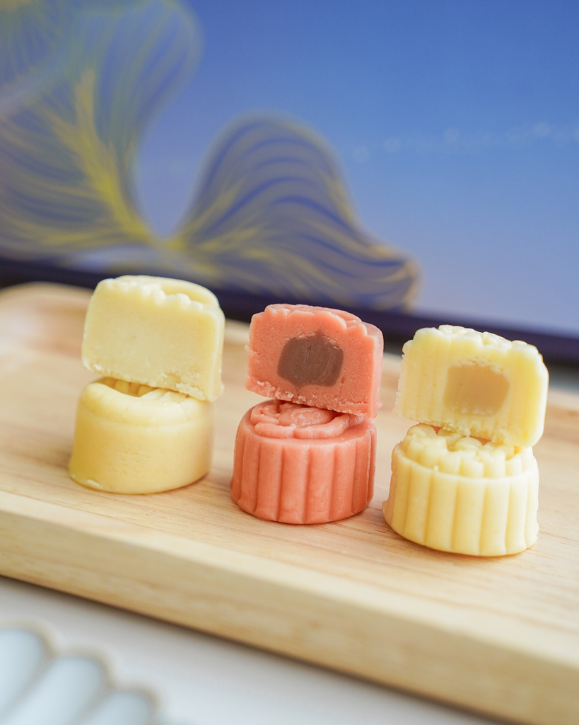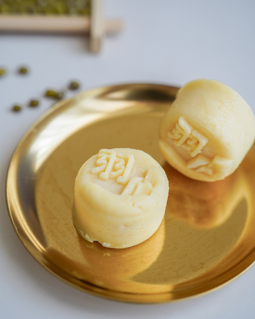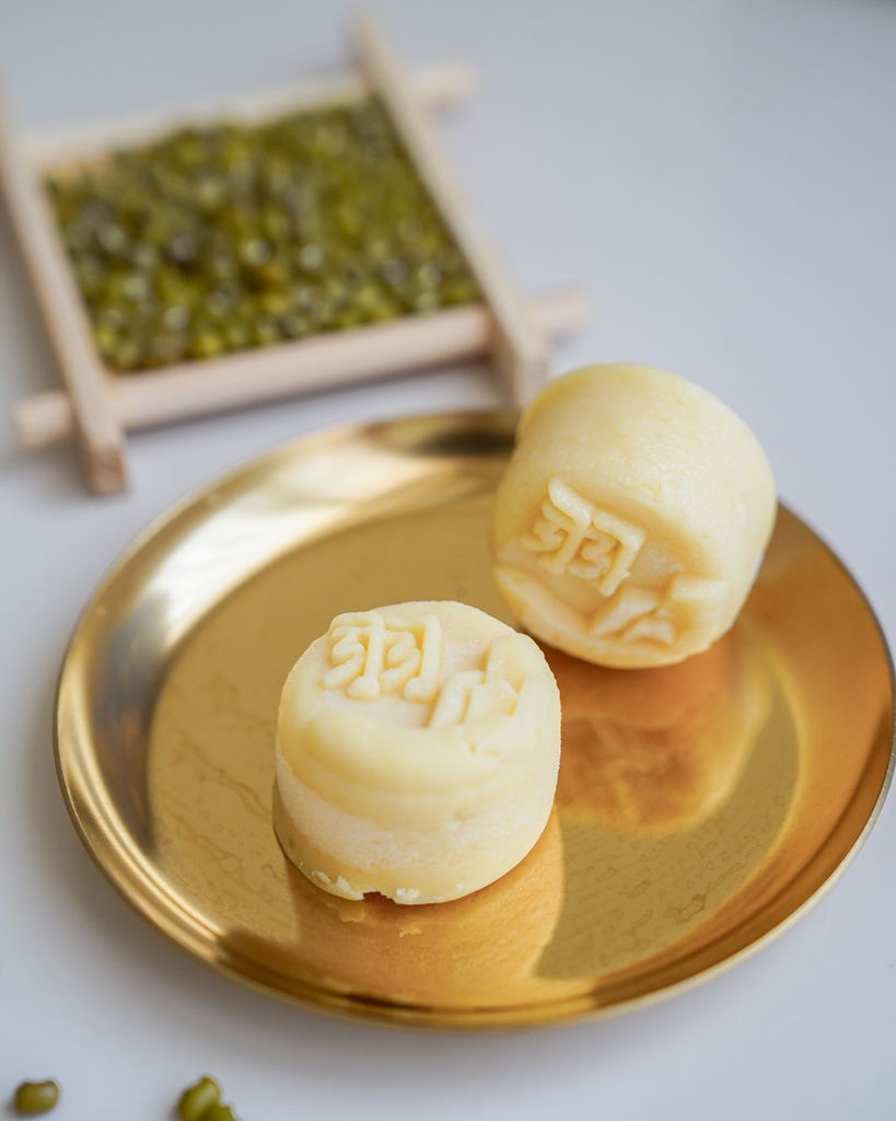 把桂花獨有的清香融入綠豆糕中,吃起來更有層次風味,冰豆糕中夾心桂花餡,綠豆與桂花的淡雅香氣一拍即合