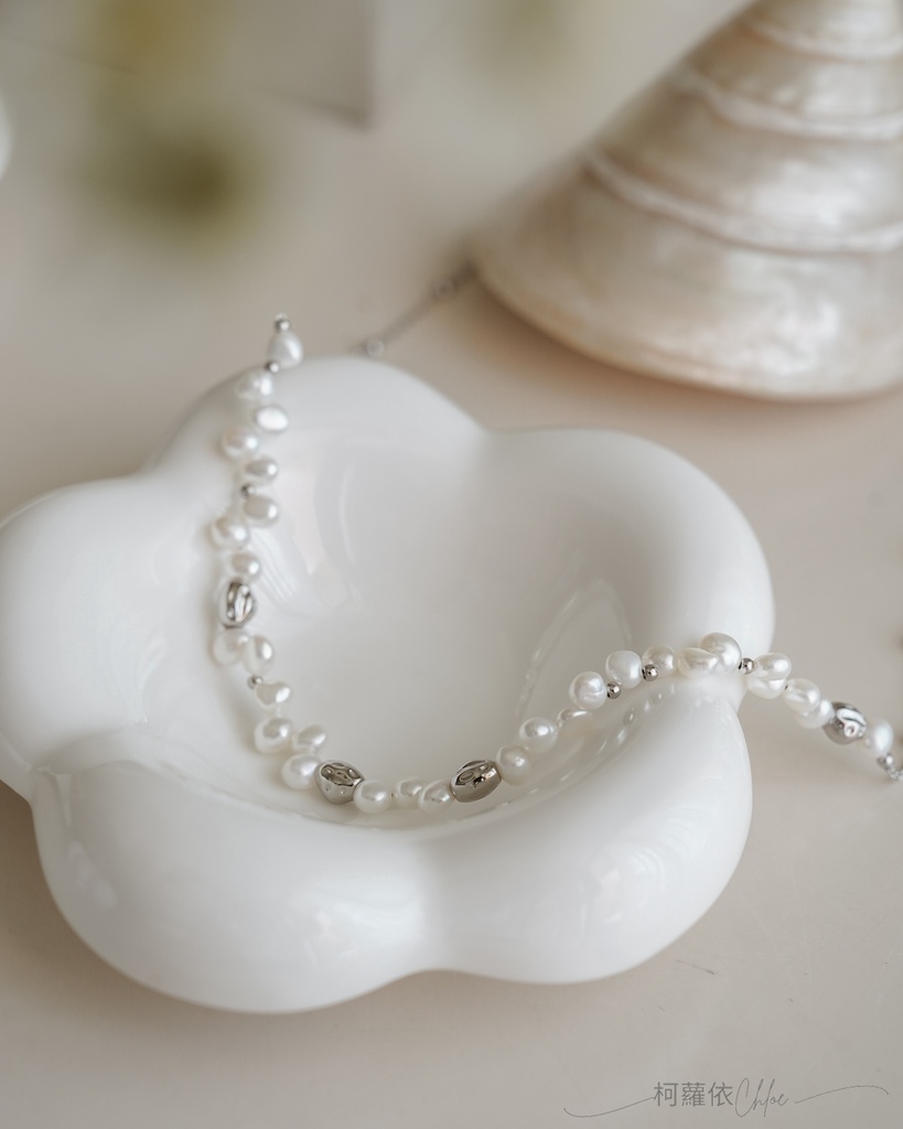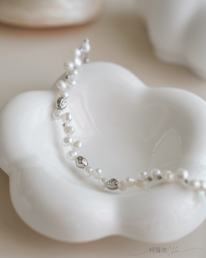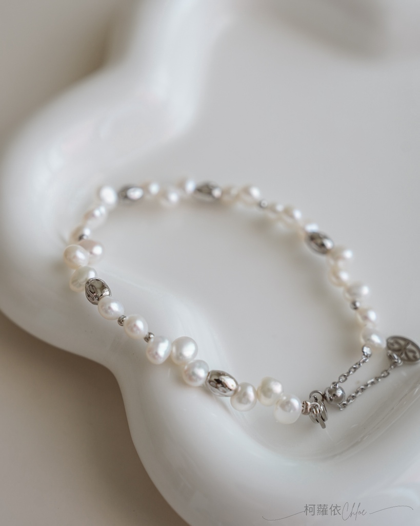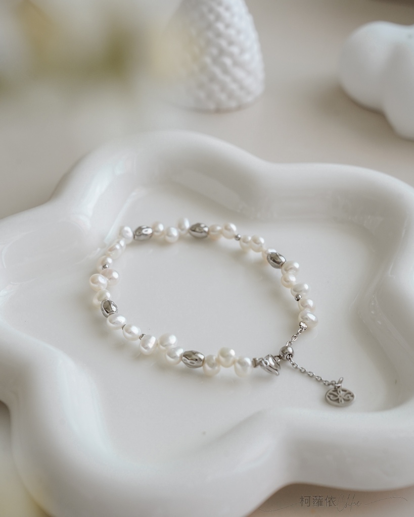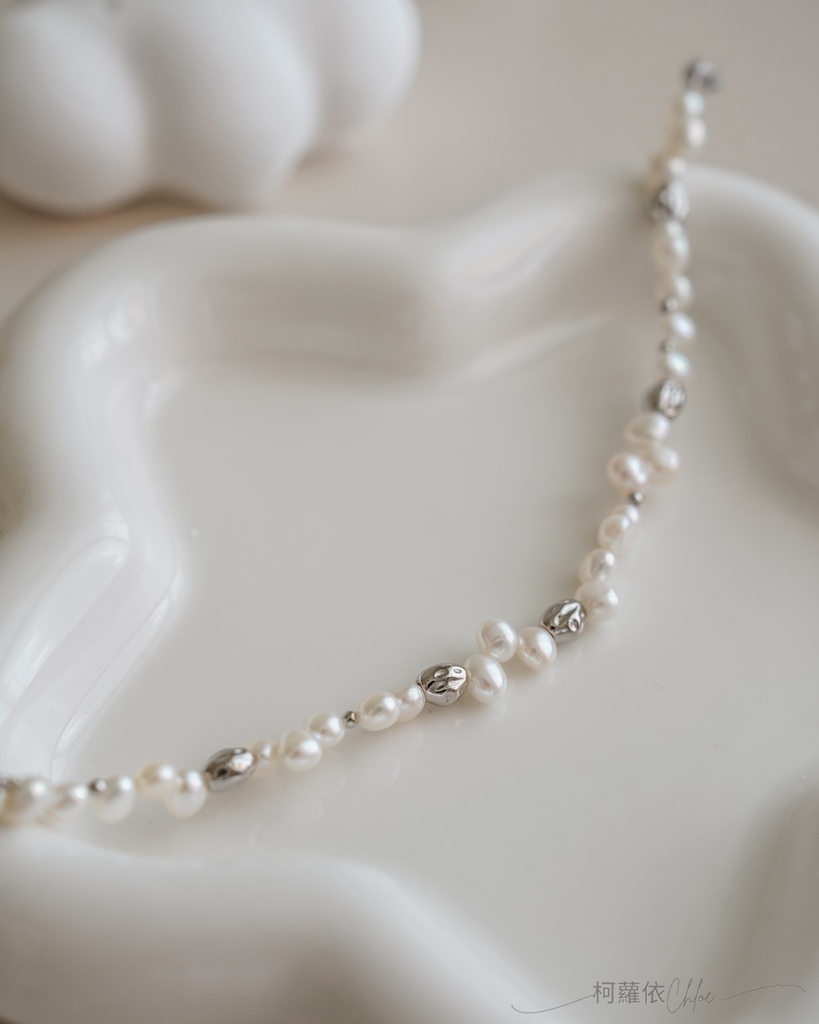 不規則的巴洛克珍珠,在光線下散發著低調溫潤的光澤,細膩而美好,適合每天都能陪伴左右的珍珠手鍊,休閒日常穿搭或者正式禮服的場合,都能為整體穿搭加分。