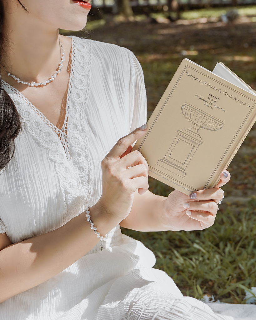 這是一款重要場合和日常穿搭都能配戴自如的優雅項鍊,精緻的珍珠閃耀著質感光澤,真的越看越美呢!