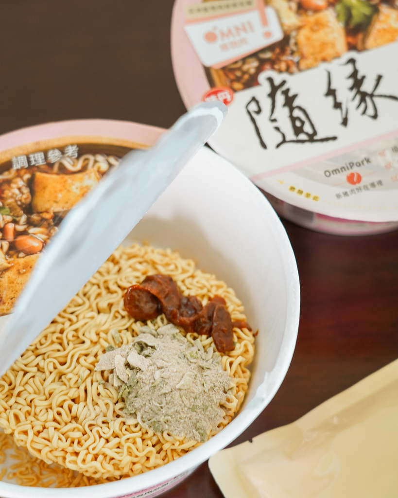 近年來蔬食飲食越來越被看重,為了友善自己、友善環境,蔬食者也成為了趨勢,並非與宗教有關係唷!像我自己也偶爾會來個幾天吃蔬食,盡量以植物性的食物為主,覺得還挺不錯的,有時候嘴饞就會想來點隨緣泡麵,這回隨緣這兩口味都有使用 OmniPork新豬肉 ,吃起來口感還真不賴,植物肉也是近幾年的流行趨勢,一來可以延緩全球暖化、解決糧食危機,也是提升大眾健康的概念,不得不說新豬肉OmniPork口感滋味和香氣媲美真肉呢!