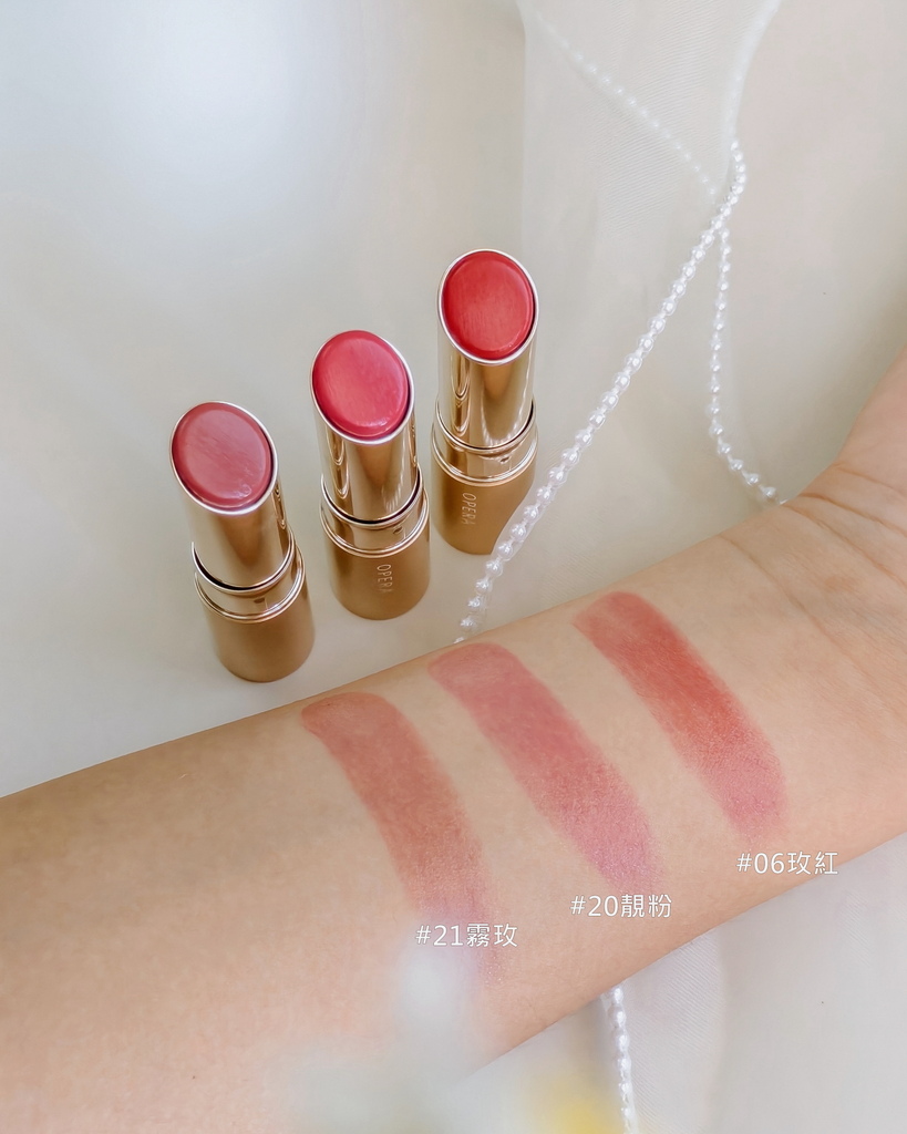 百搭的OPERA渲漾水色唇膏N,三支粉紅色系唇膏都好迷人,#06玫紅、#20靚粉、#21霧玫,你們喜歡哪一款?