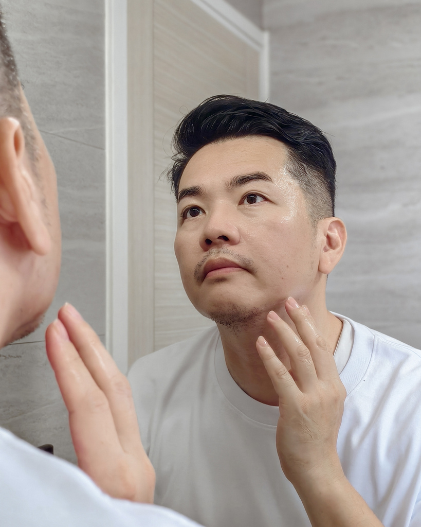 老實說大衛哥的膚況以這年紀來說不算差,但因為戶外室內工作的關係,很常出現外油內乾的情況,現在有LAZEASE保養當後援,有效率的簡單兩步驟保養,輕鬆面對忙碌生活。尤其噴霧精華有滋潤度,就算不擦乳液也可以有滋養感,這對男士朋友來說真的減省了不少心力,又不用擔心油油膩膩的,整體來說穩膚超有感的!