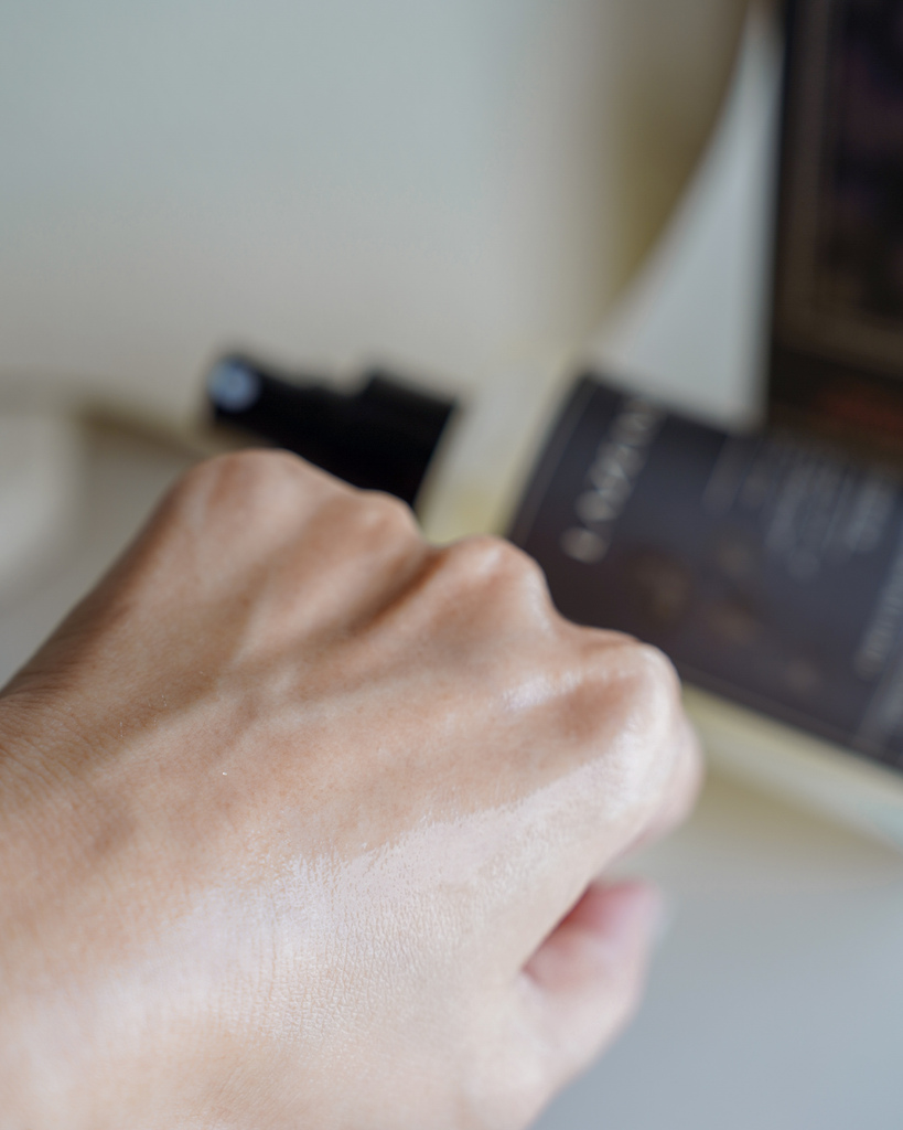 細緻的水霧精華,是輕盈水潤的質地,精華液稍微按摩一下就很好吸收唷!
