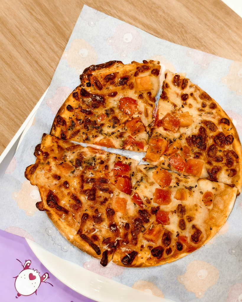 薄皮披薩選瑪格麗特口味的,薄皮吃起來剛剛好,番茄丁鋪在披薩上,調味屬於中規中矩