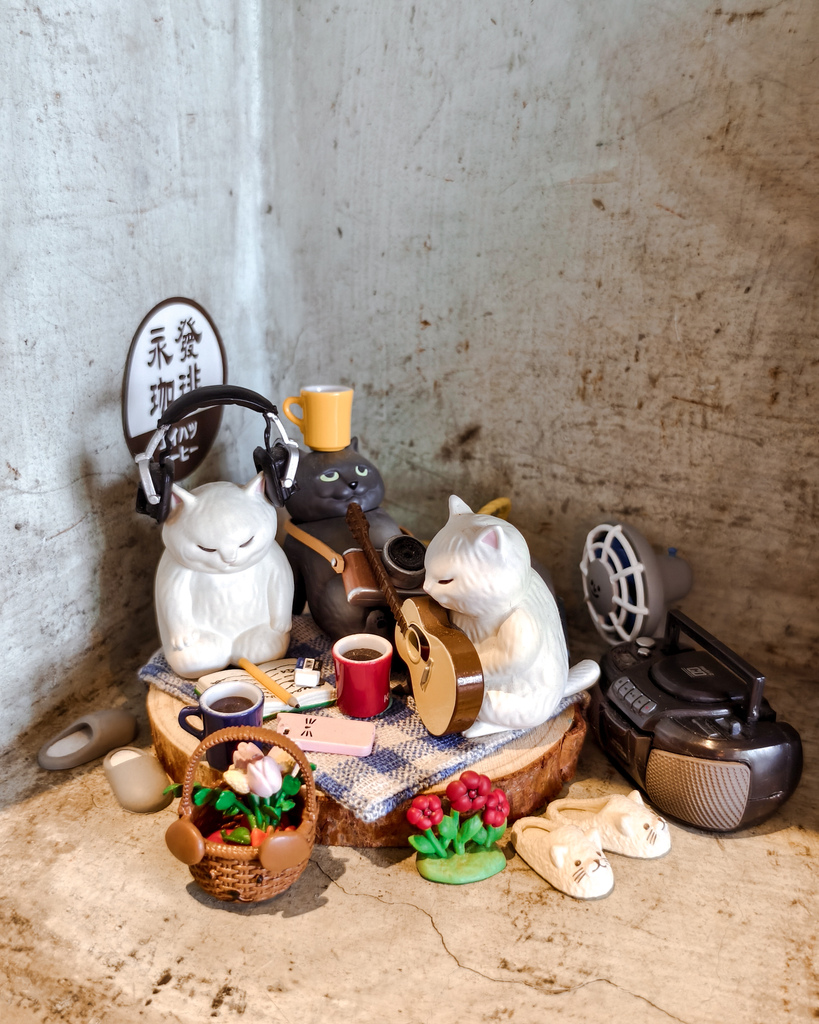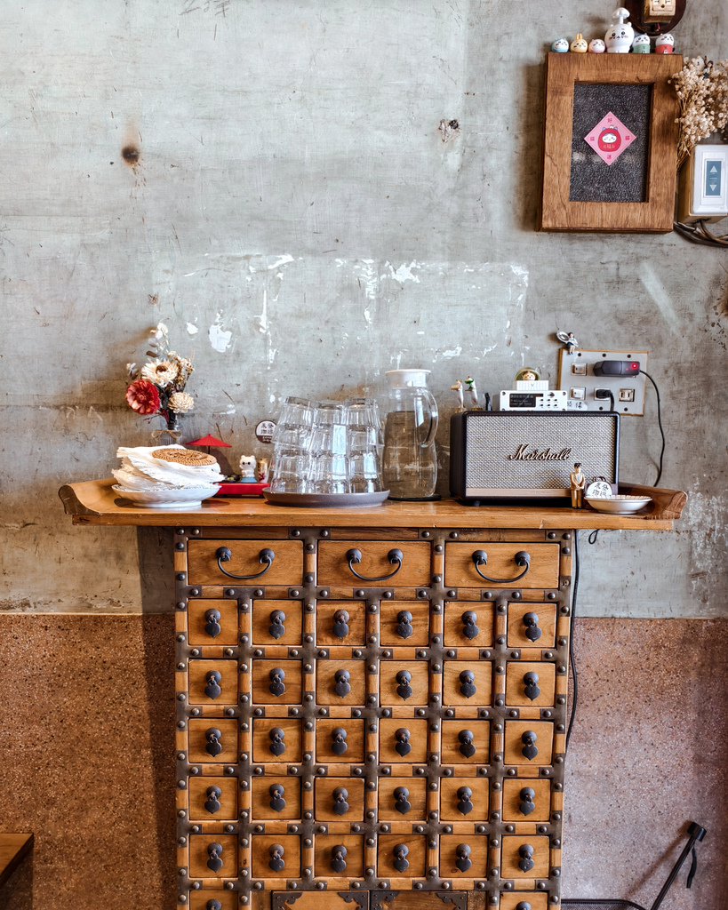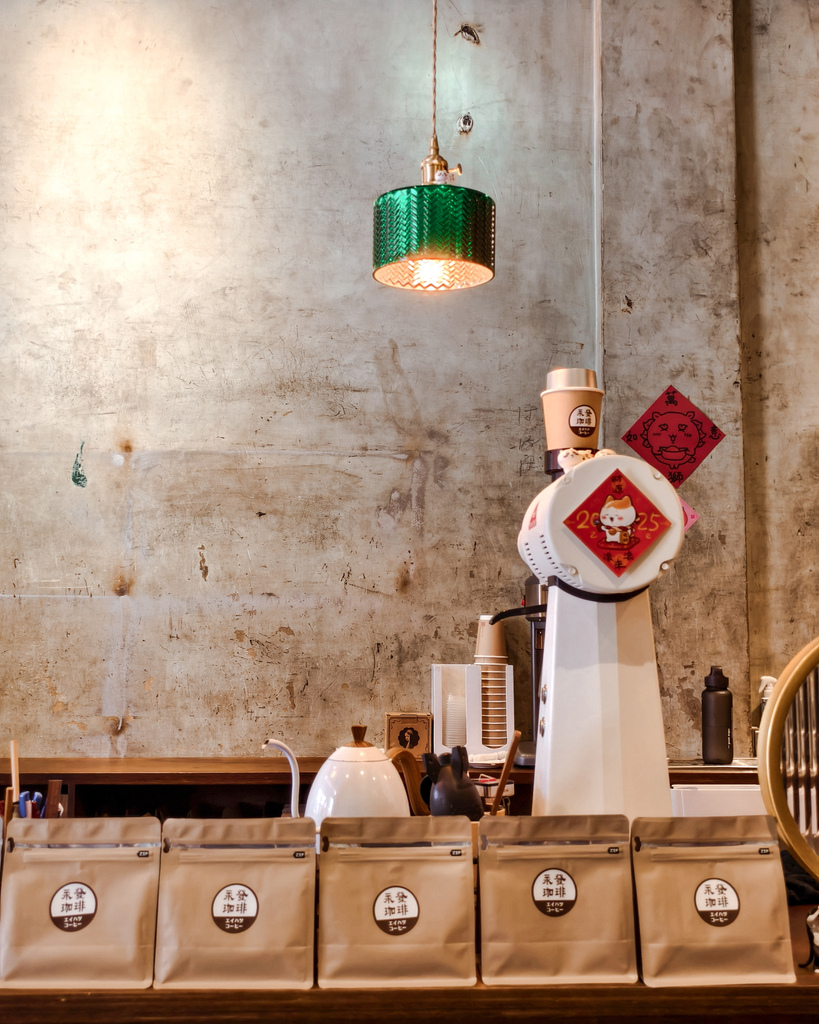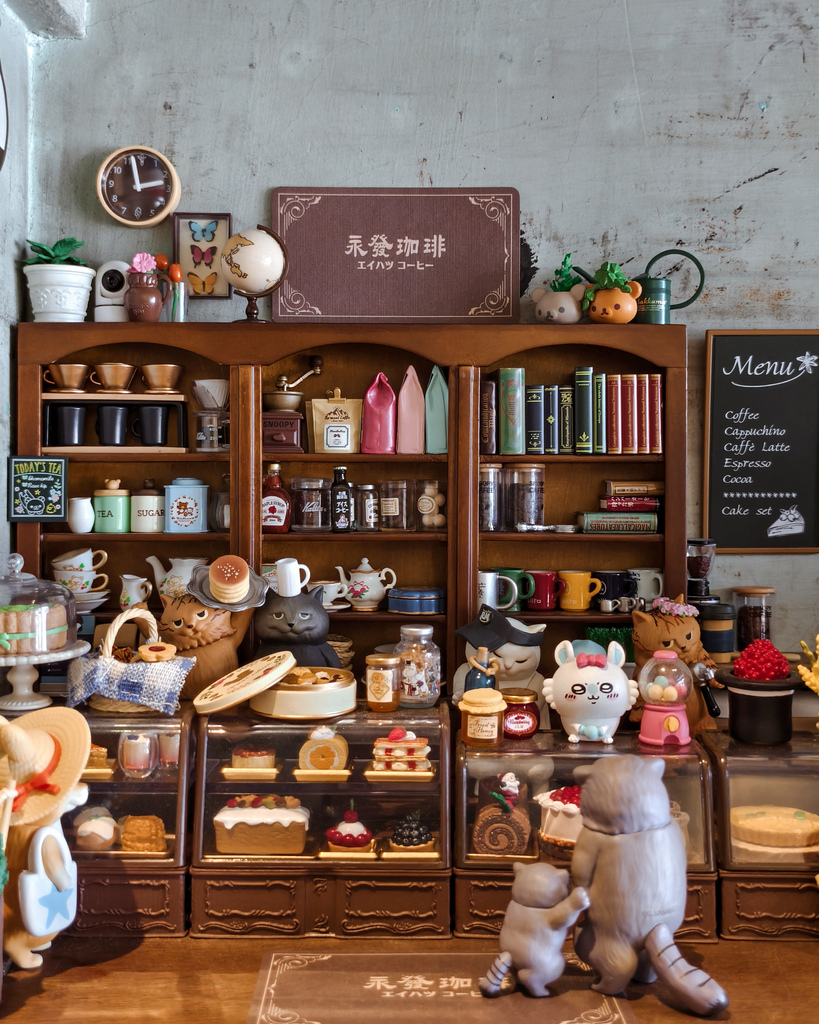永發珈琲店裡的擺設很有復古美,以木質擺設結合原有老宅留下的水泥牆等元素,呈現和諧的氛圍,讓人會心一笑的是,仔細查看會發現有很多可愛的迷你公仔唷!