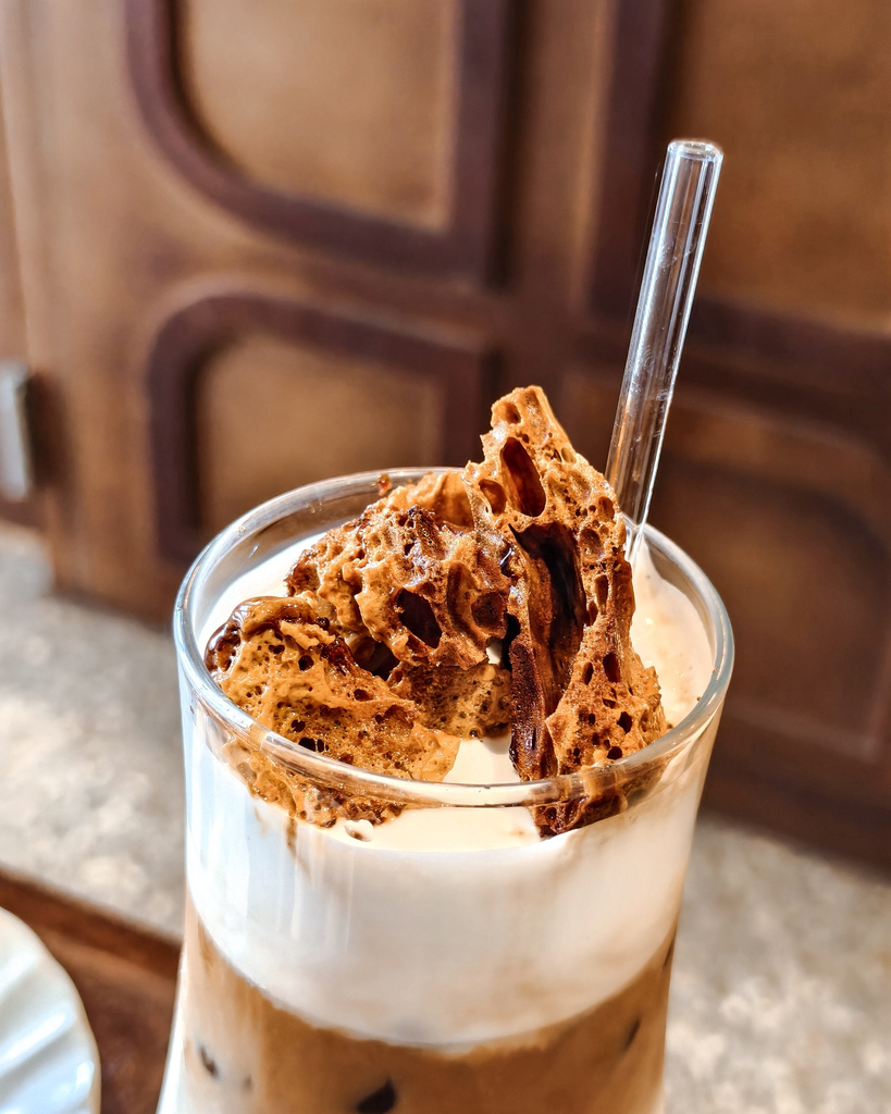 融入台南古早味特色的拿鐵,記得小時候在家也玩過椪糖DIY,吃起來就是酥酥脆脆的焦糖餅乾,店員說點這杯椪糖拿鐵,還可以續加一次椪糖喔!