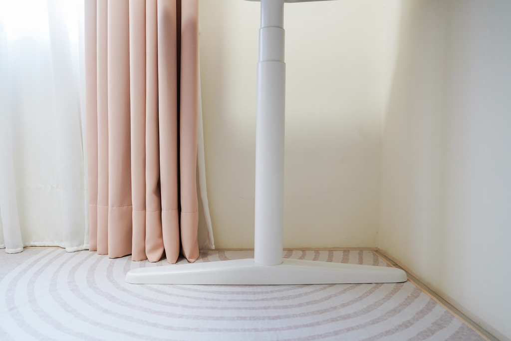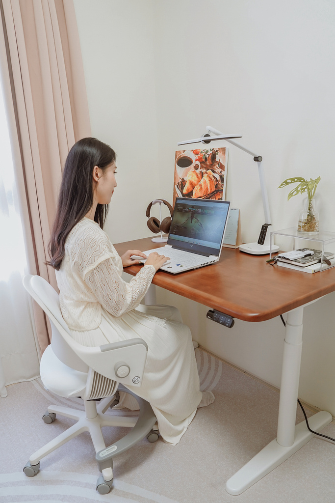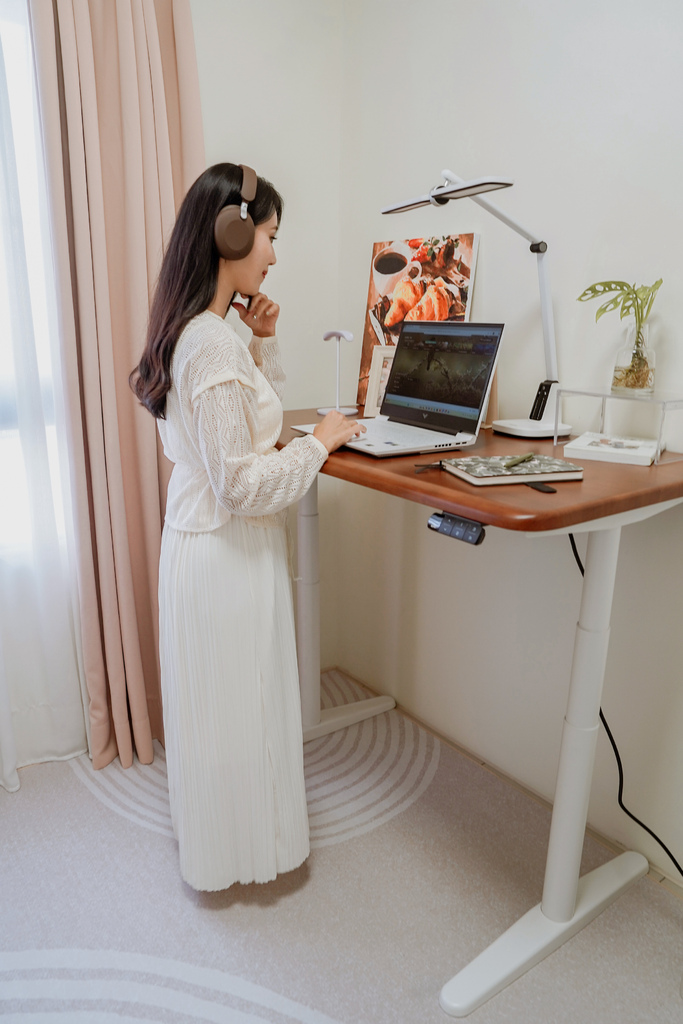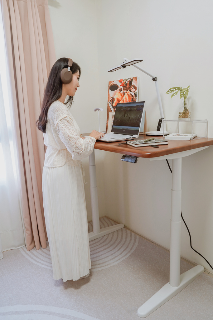 操作升降桌的時候,不會被那突如其來的馬達聲嚇到,升降音量低於50分貝,升降過程滑順又安靜,這對家裡有寵物或小朋友來說很友善呢!而且整體來說很穩,安靜調整升降,不會搖搖晃晃。