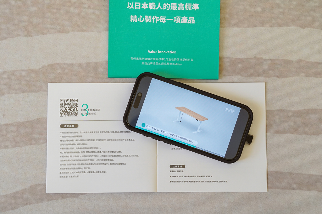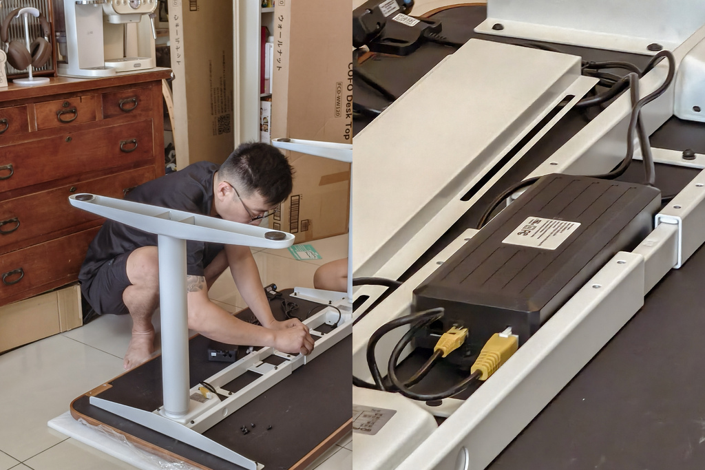 COFO 良木升降桌宅配到府後是需要安裝的喔!可以觀看安裝影片,或者加購專人組裝服務,由於非常重,建議至少兩人一起組裝,那天我們直接請師傅送貨抵達並且幫忙組裝,不到半小時就完成,果然還是交給專業的來比較省心省力!