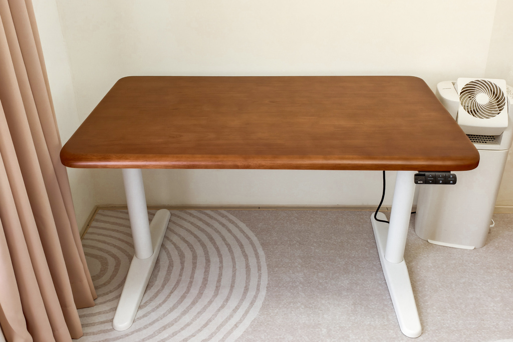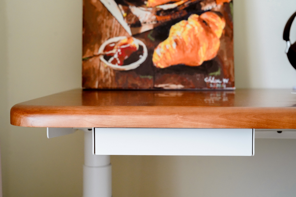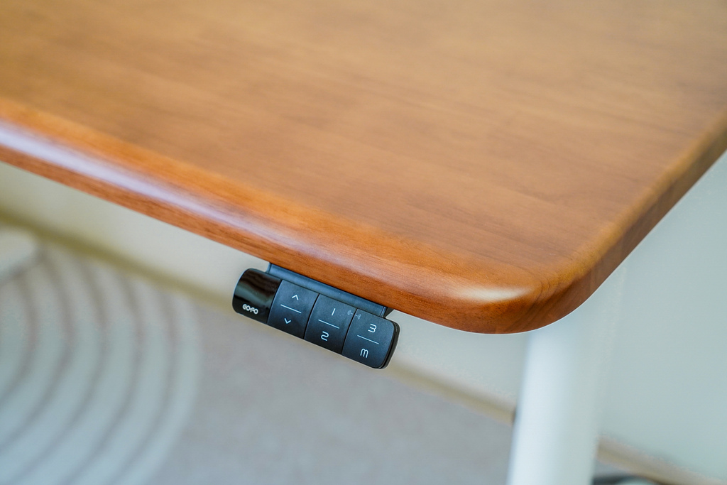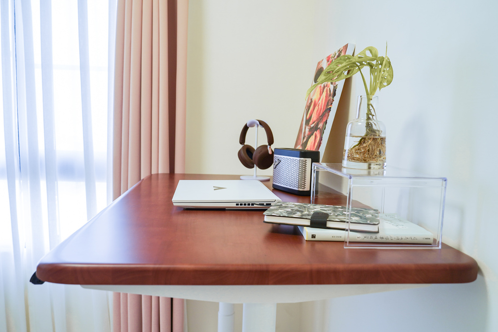 原木材質就是讓人有一種安心、溫暖的感覺,擺在居家空間裡也很有安定的氛圍,仔細看會發現COFO良木升降桌的細節真的不馬虎,在桌子的邊角也有圓弧處理,使用上能減少尖銳碰撞的危險,圓潤設計也讓整個空間與視覺感更加柔和了!