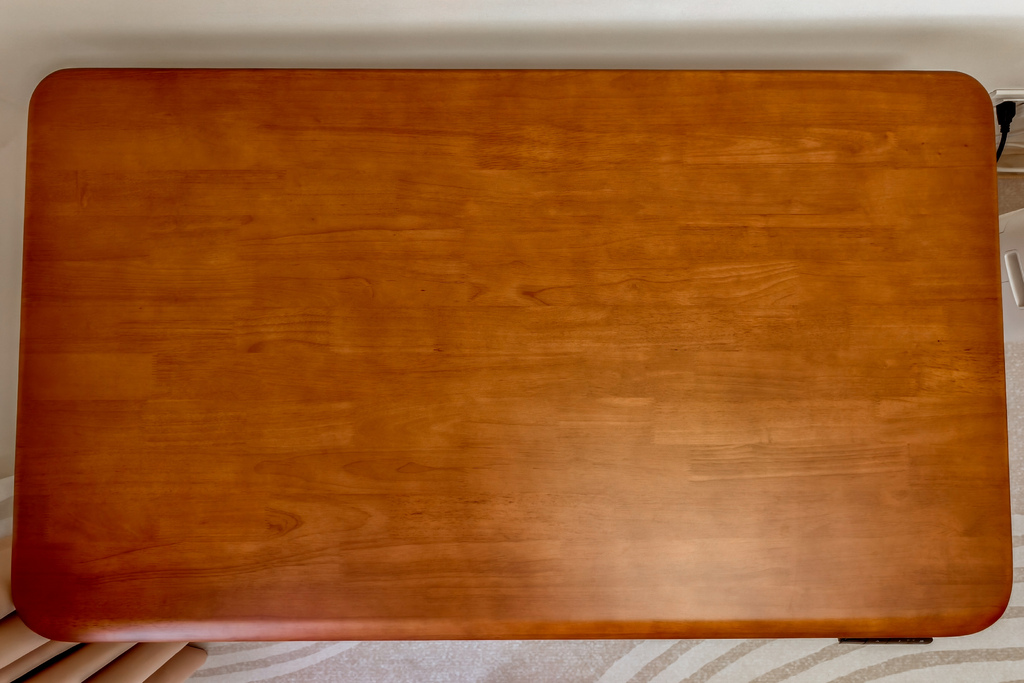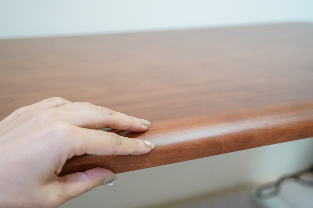 質感爆棚的原木桌面,用過就會愛上那溫潤的天然原木桌面,我選擇的是典雅質感的胡桃木,讓我心動的就是COFO良木升降桌選用的是實木材質,不是那種夾板,因此更耐用了,加上表面有讓人安心的聚氨酯塗料,沾染飲料、油脂,清潔上不用太費心,用濕布就能輕鬆擦拭乾淨。