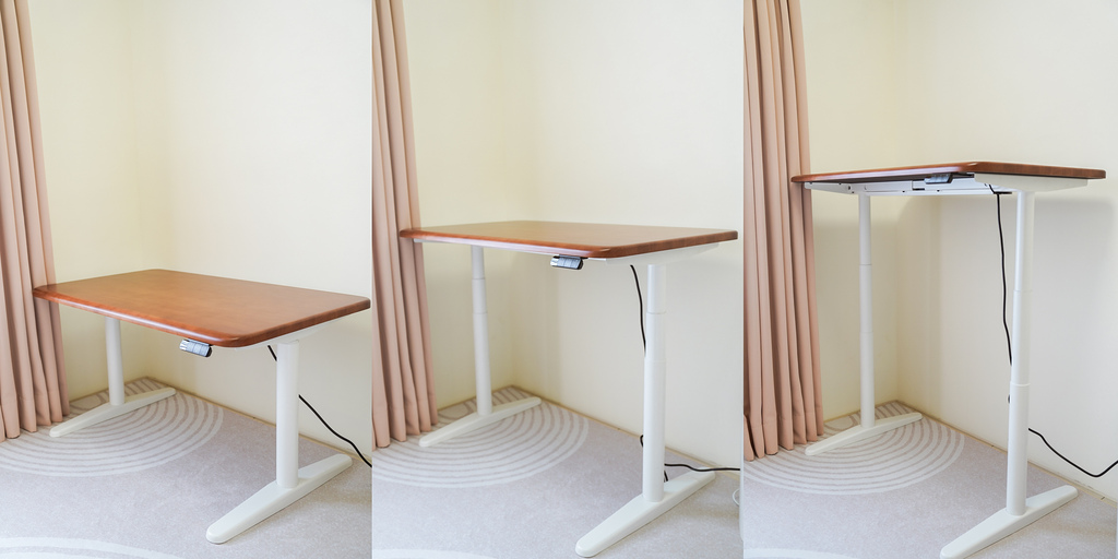 三節式升降桌的好處就是可以達到的70cm以下桌高,符合人體工學需求的高度,因為未滿170公分的人建議桌高在 63-68 公分之間,三節式設計較能符合需求,找到最適合自己的人體工學高度,坐著用電腦打字的時候也比較舒適啊,不用吊著手打鍵盤。