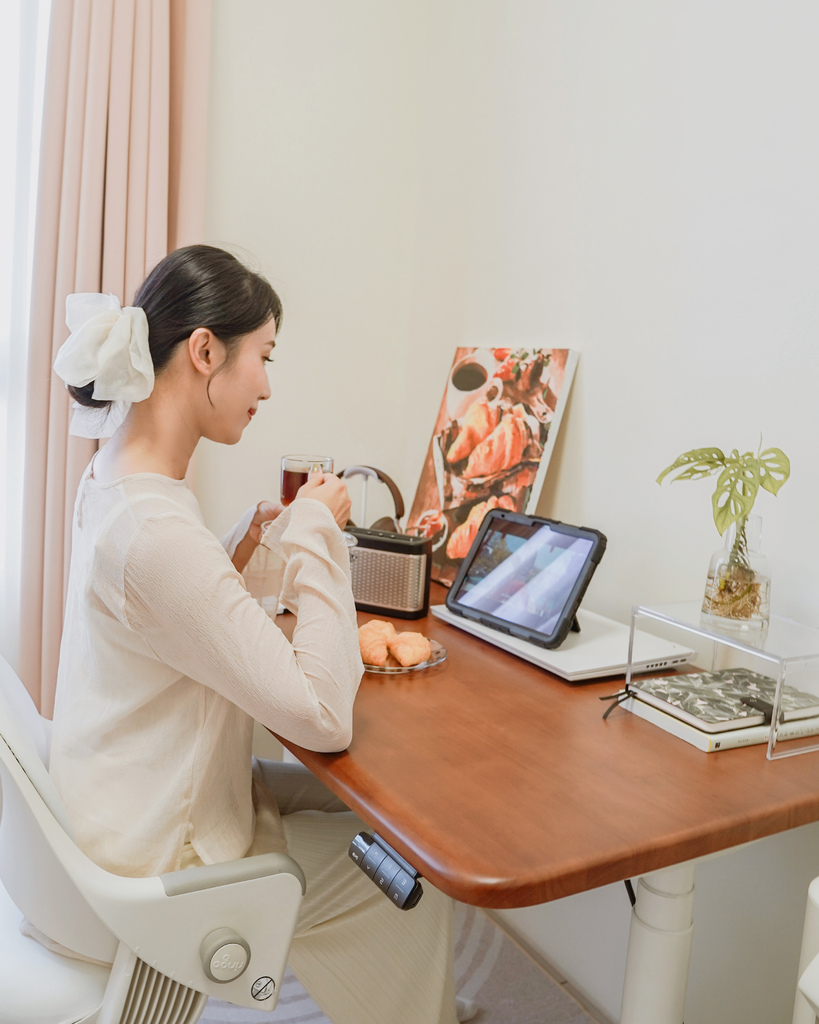 有了COFO良木升降桌,讓我更能好好享受生活,不只是工作,有COFO良木升降桌陪伴日常,每一刻都感覺很舒適,儀式感十足!加上有桌下磁吸收納設計,桌面不再亂糟糟,自由升降調整也能讓我坐著工作、站著作業交替更換,避免長期坐太久姿勢不良的困擾,這些都是我愛上COFO良木升降桌的原因。