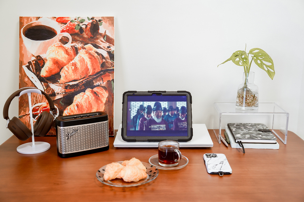 不只是工作桌,當餐桌也很有質感啊,因為是實木桌面,餐點擺在桌上看起來更有食慾啦!