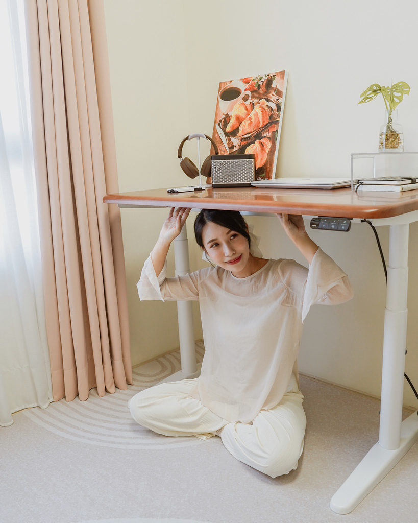 良木升降桌在升降的時候可以感測障礙物,也是一種防誤觸安全設計,遇到障礙物會立即停止,這一點設計讓人感到安心啊!比如說我在桌下整理,感測障礙物功能可以讓操作停止,若身邊有幼童誤觸也比較不擔心,安全考量設計超貼心。