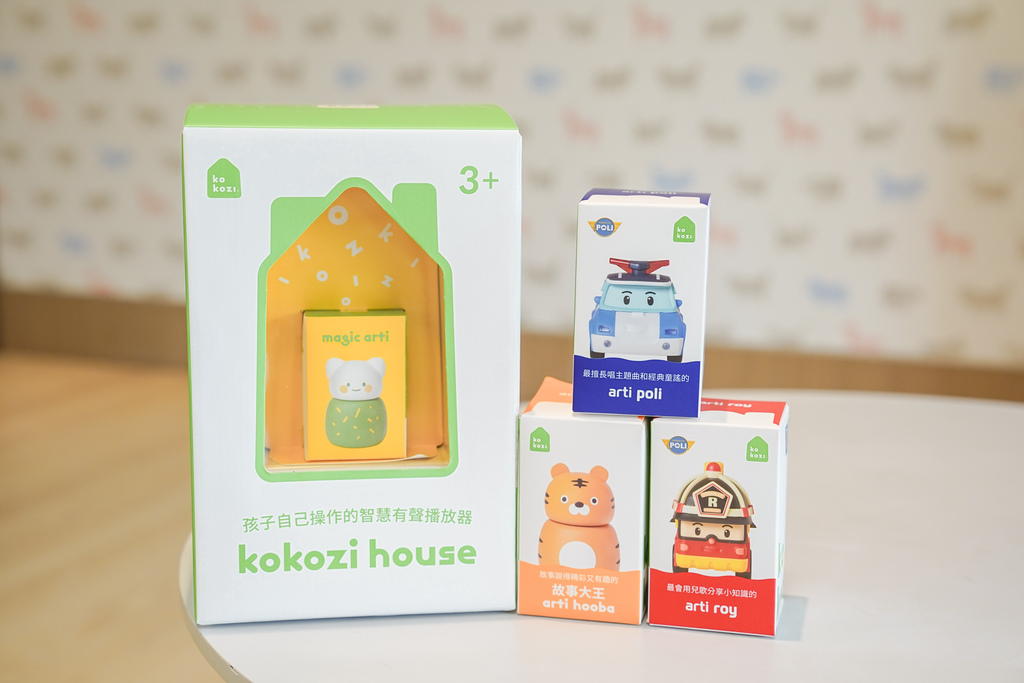 kokozi house是一款可以讓孩子自行操作的播放器,每台 kokozi house 都附贈空白的magic arti ,可以讓我們家⻑透過 kokozi 應用程式錄音並存進magic arti ,也能和孩子一起錄音、唱歌,也是挺有趣的!目前推出多種arti 角色,每一隻arti 就像一張專輯,每款都有不同精彩內容,可以依照喜愛的音樂、故事等有聲內容來加購喔~