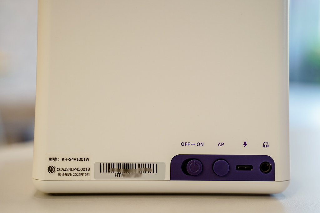 背面有開關等按鈕,充電方式以type-C很方便,房子造型的播放器真的很可愛,煙囪可以調整聲音大小,小窗戶則是用來顯示連接是否成功或者充電狀態