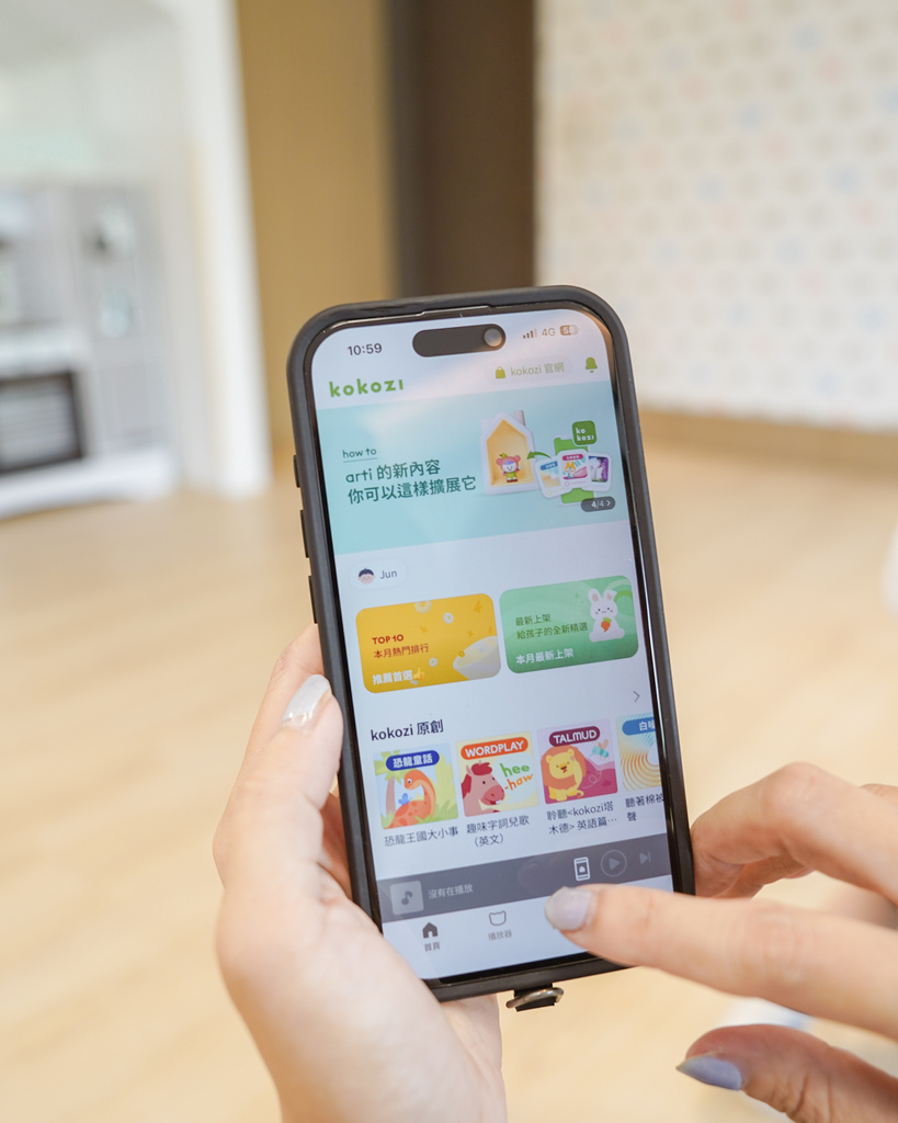 家長們可以先下載kokozi 應用程式,先進行家中的Wi-Fi連結,後續就可以輕鬆操作。家長們可以在 kokozi APP上瀏覽、試聽、添購,並存入已經擁有的 arti 中,我覺得這點設計真的很方便,也能透過 kokozi APP遠端操控播放器,像是調整燈的亮度、音量大小,或直接點選想播放的曲目都沒問題。